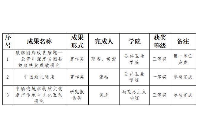 近日,中共云南省委、云南省人民政府印发《关于表彰云南省社会科学奖获奖成果的决定》,昆明医科大学共有3项成果获云南省社会科