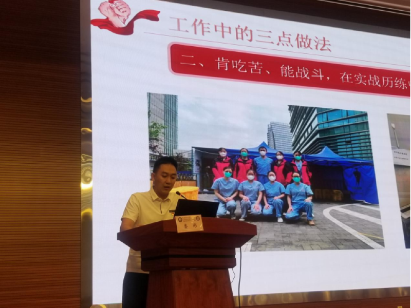 援沪医疗队队员曾海萍老师分享了《“大白”的“大白”责任如山》,她从自己所归属的感控团队开始介绍,简要分享了大家积极投入疫情防控的事迹和成绩,结合自身成长经历,讲述了援鄂、援边、援沪经历及期间发生的感人故事。