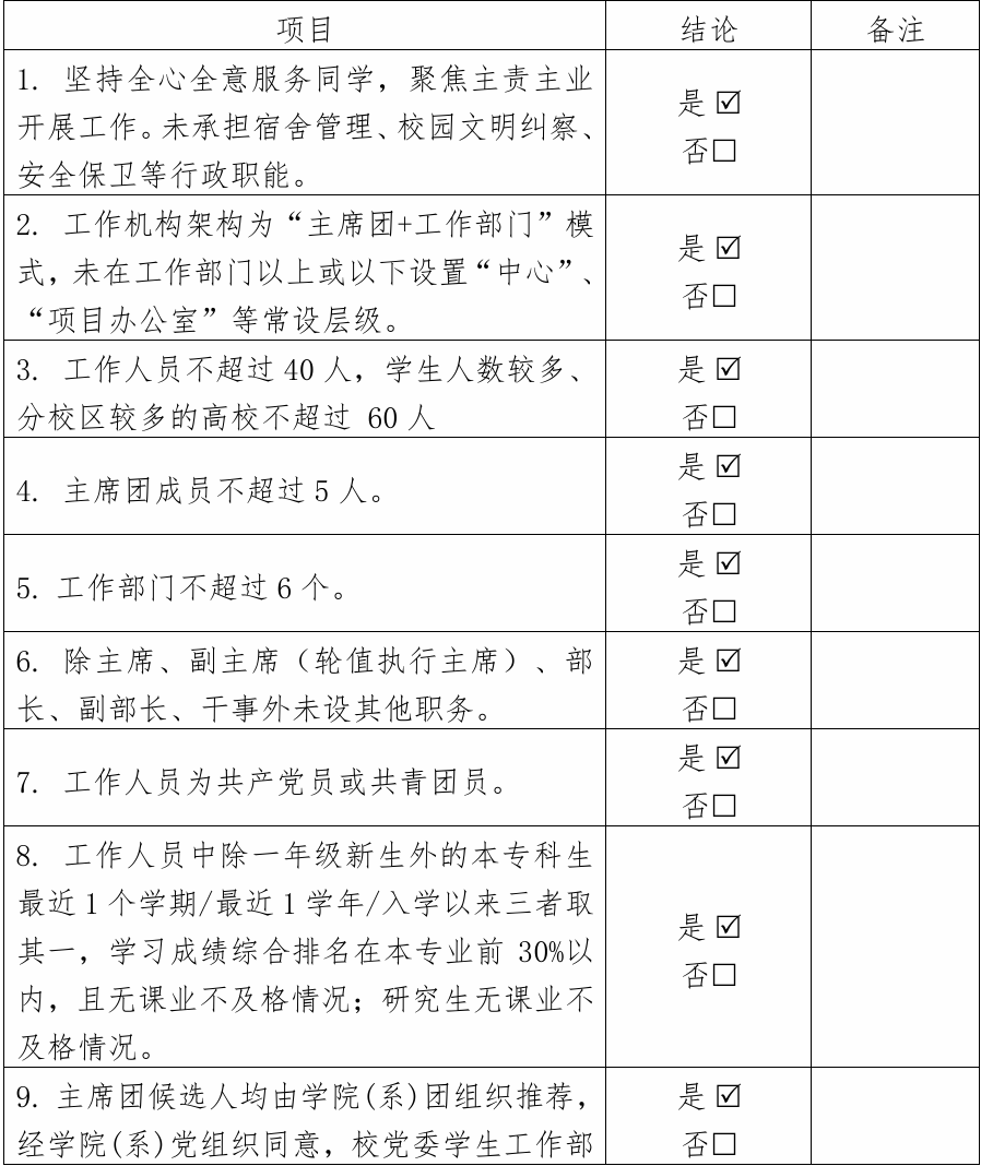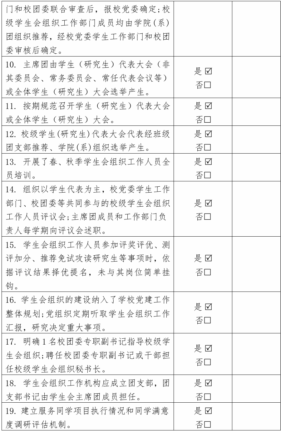 (二)二级学生会组织(含二级院系、书院、分校区等学生会、研究生会)改革自评表