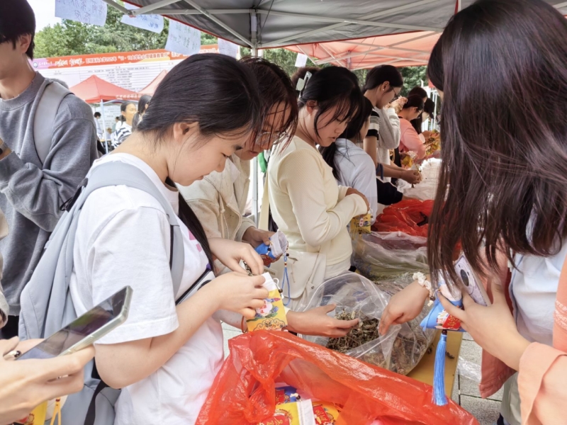 活动当天,学生会堂前热闹非凡,活动内容丰富多样,涵盖了医学知识问答、健康科普宣讲、手工制作实践、中西医结合理念阐释以及中医疗法体验等多个环节,吸引了一批又一批师生们积极参与实践、体验特色活动。