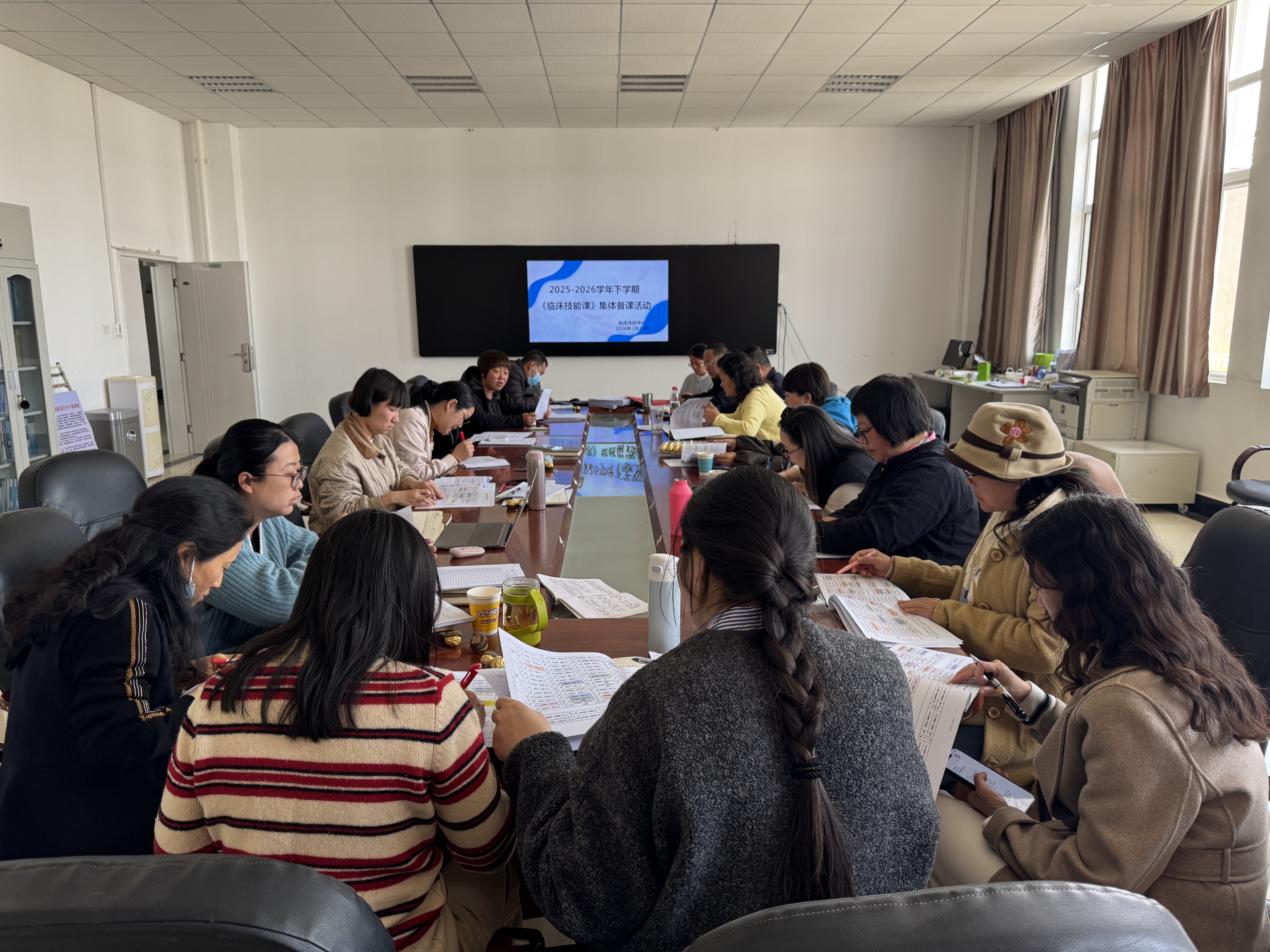 为确保教学质量,统一教学标准与规范,2月26日,中心组织全体任课教师在中心会议室开展了2025-2026学年第二学期《临床技能课》集体备课活动,本次集体备课参加人员包括:中心全体教师、附属延安医院、儿童医院、昆明市妇幼保健院等承担本学期《临床技能课》授课的教师。