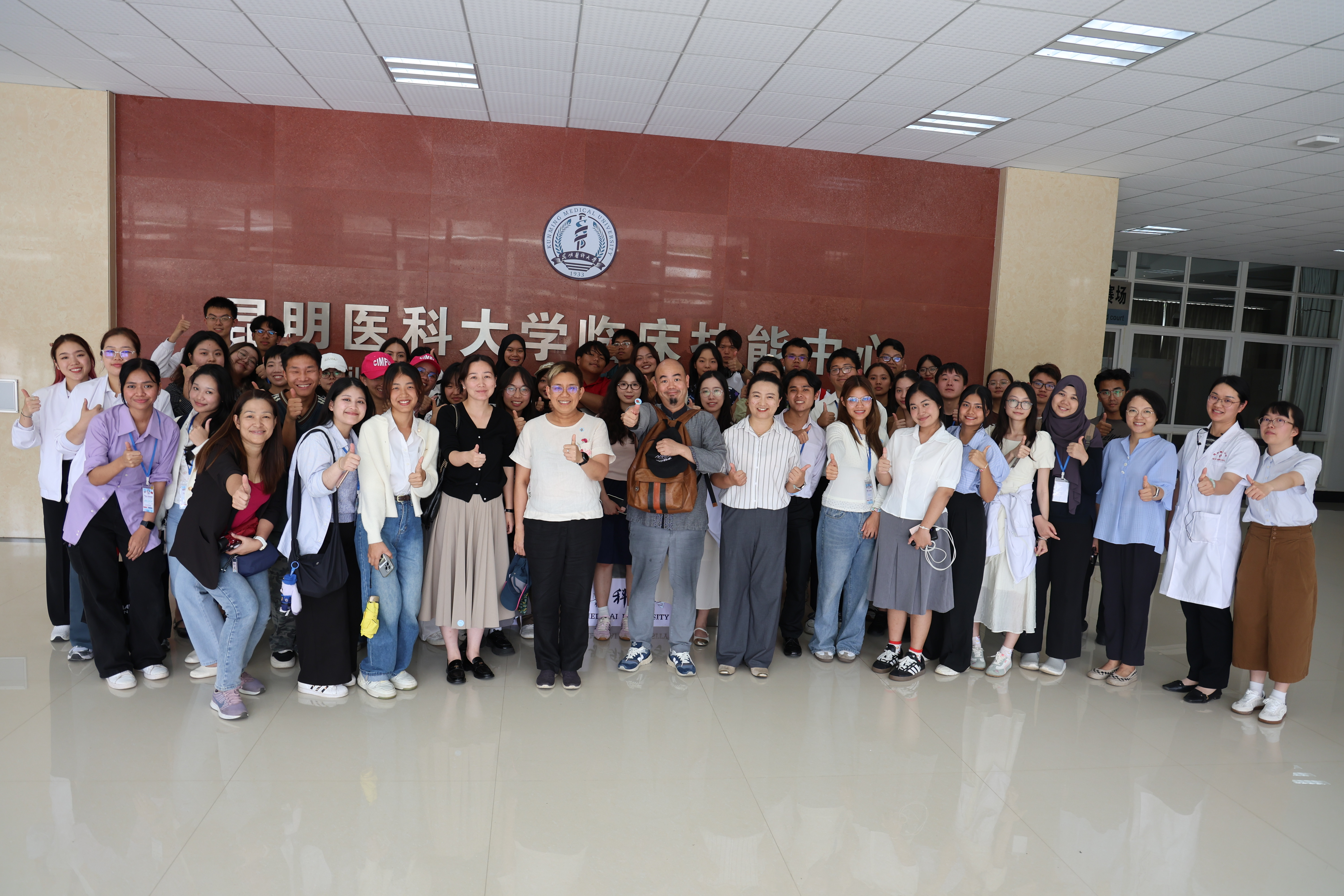8月16日下午,由泰国皇太后大学发起主办,泰国玛希隆大学、宋卡王子大学、云南大学、昆明理工大学、昆明医科大学、云南师范大学、云南中医药大学联合协办的“泰中青年大使夏令营”中泰师生约50人到临床技能中心参观交流。