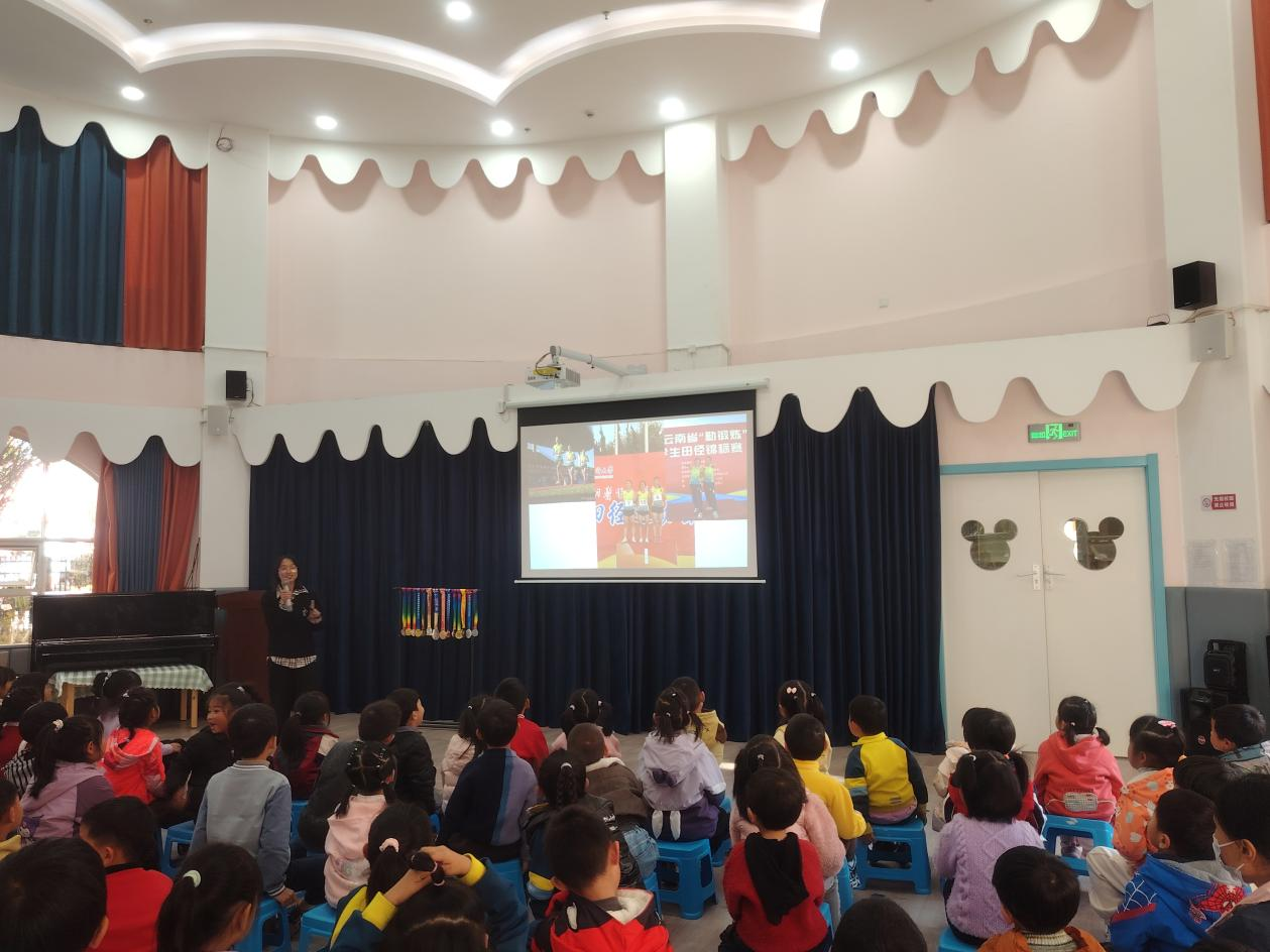 下午,活动聚焦“榜样引领”与“精神启迪”。 由昆明医科大学校田径队荣获省级以上赛事冠亚军的运动员代表与中大班幼儿进行面对面交流。运动员们以“大朋友”的身份,分享了关于坚持、协作、克服挫折以及在枯燥训练中寻找乐趣的亲身经历。通过展示日常训练器材、分解起跑姿势等形式,将“追求卓越、健康第一”的体育精神转化为孩子们可感可知的具体形象。激发幼儿对系统性运动的初步兴趣,树立积极进取、规则至上的人生价值观。
