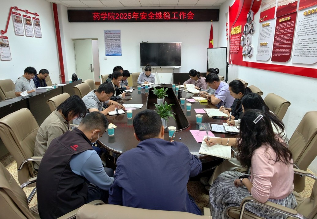 2025年9月25日上午,药学院在药学楼一楼会议室召开中秋国庆双节前安全维稳工作会议。学院党政领导、中层干部、党政办公室及学办全体成员参加会议。会议由学院党委书记张有福主持。