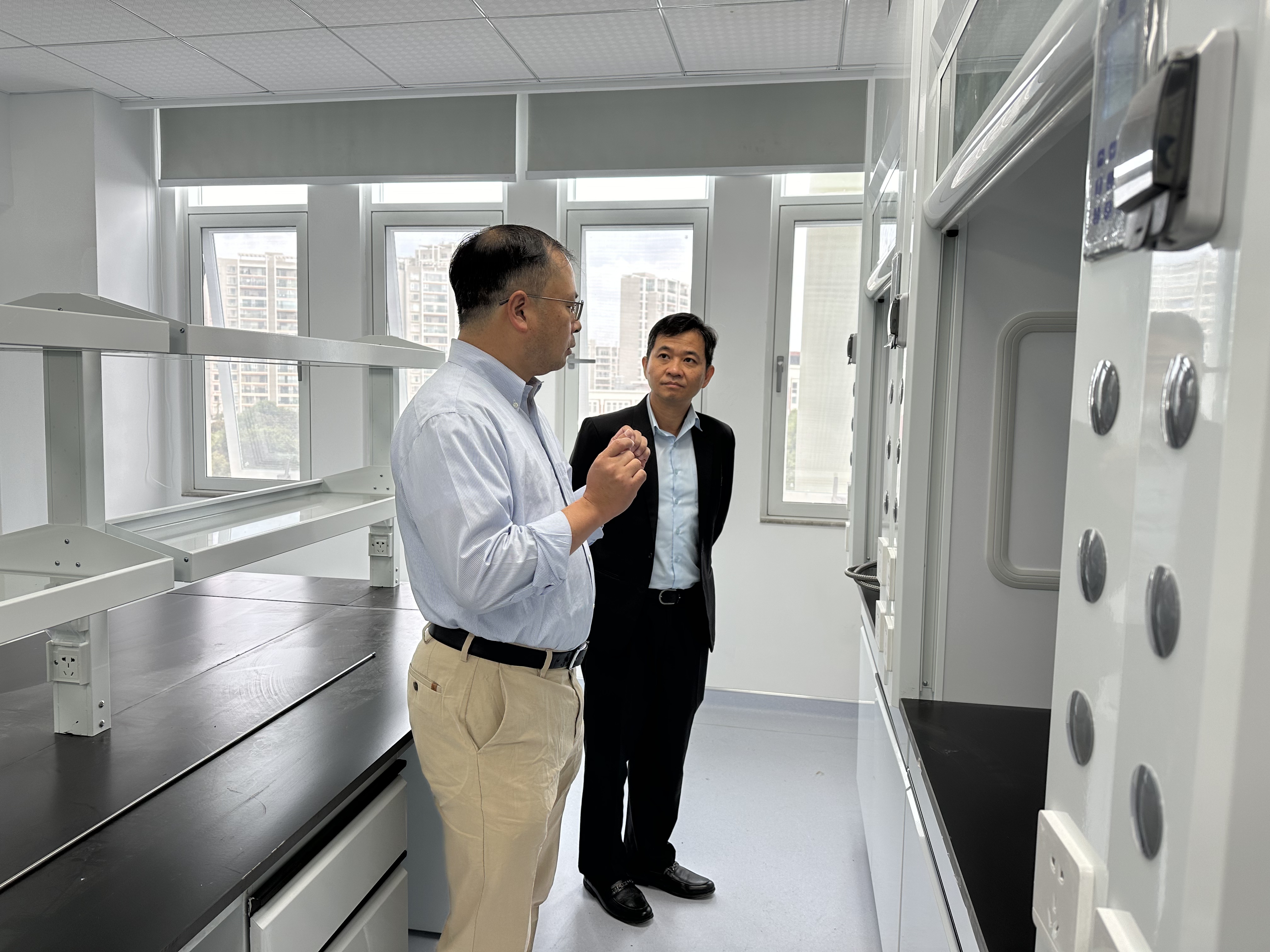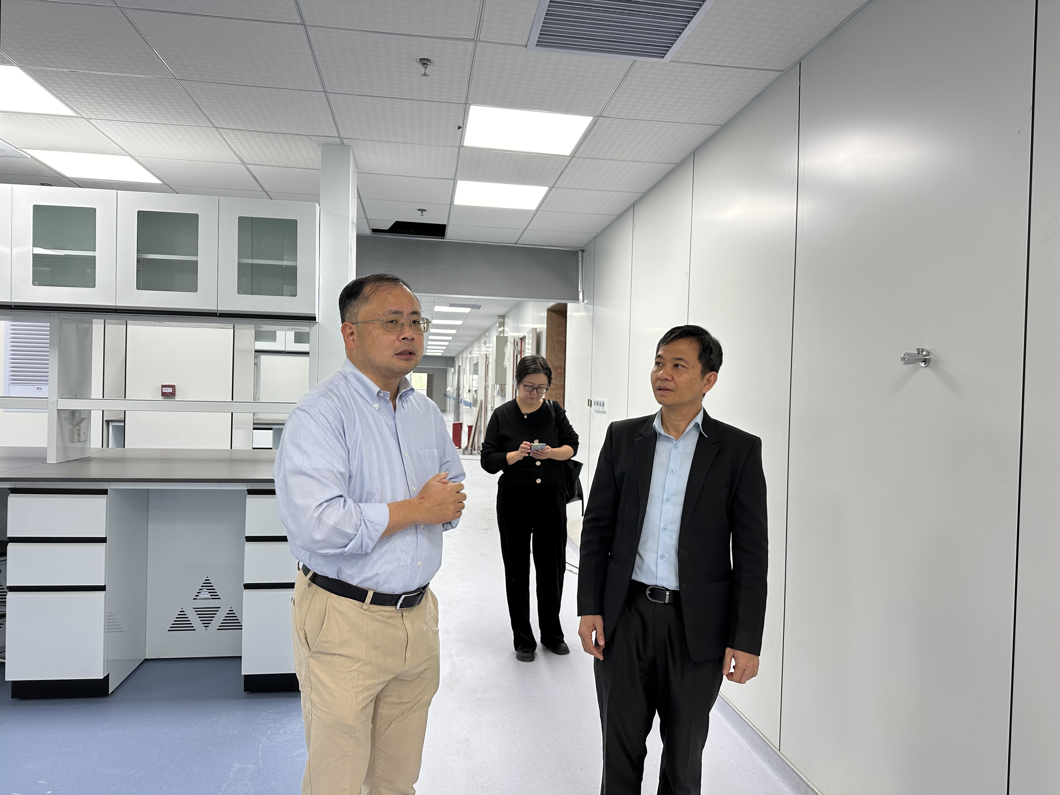 Rothmony EANG首先参观了我院正在改造建设中的云南省天然药物药理重点实验室,郎靖瑜向其详细介绍了改造项目的目标和建设进展情况,指出重点实验室改造是学校为了对接“健康中国”战略和“双一流”建设目标而投入的重大基础设施建设项目,以“交叉融合、开放共享”为核心,重点布局人工智能辅助药物设计和分子靶点筛选平台、现代化药理药效评价平台、云南特色真菌和药用植物化合物研究平台。同时,规划了药学大型仪器共享平台、细胞培养室及标准化P2+实验室,旨在打造贯穿药物研发全链条的创新研发体系。Rothmony EANG对改造工程表示高度赞赏并表示:“如此大力度的投入,充分体现了昆明医科大学对药学学科发展的高度重视与远见卓识。这座现代化的科研大楼,不仅是一个物理空间,更是一个孕育重大创新成果的摇篮,必将极大地提升药学院的原始创新能力和竞争力。”