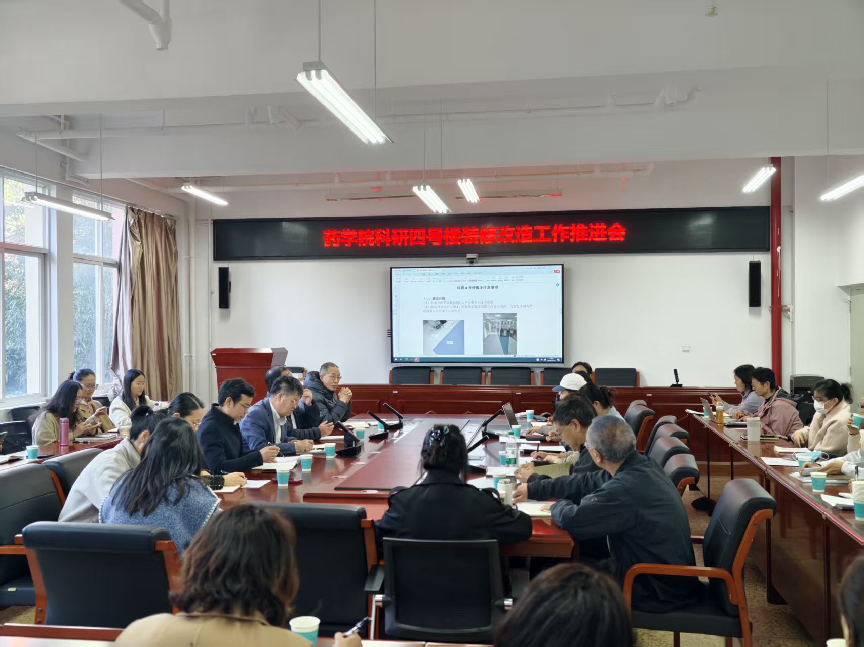 11月17日下午,药学院在药学楼204会议室召开科研四号楼装修改造工作推进会。学院党政领导,院属各党支部书记,各办公室、系、中心主要负责人,以及搬迁工作相关责任人参加会议。会议由学院党委书记张有福主持。