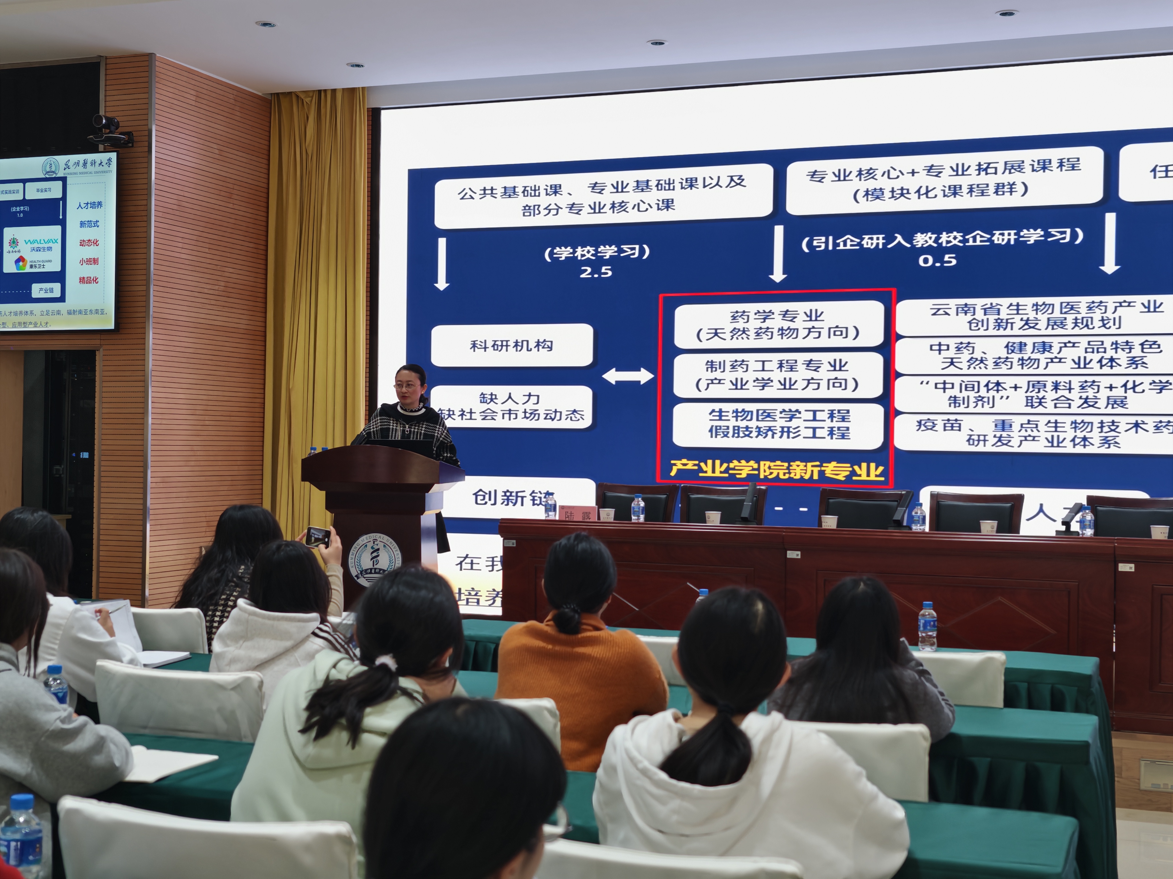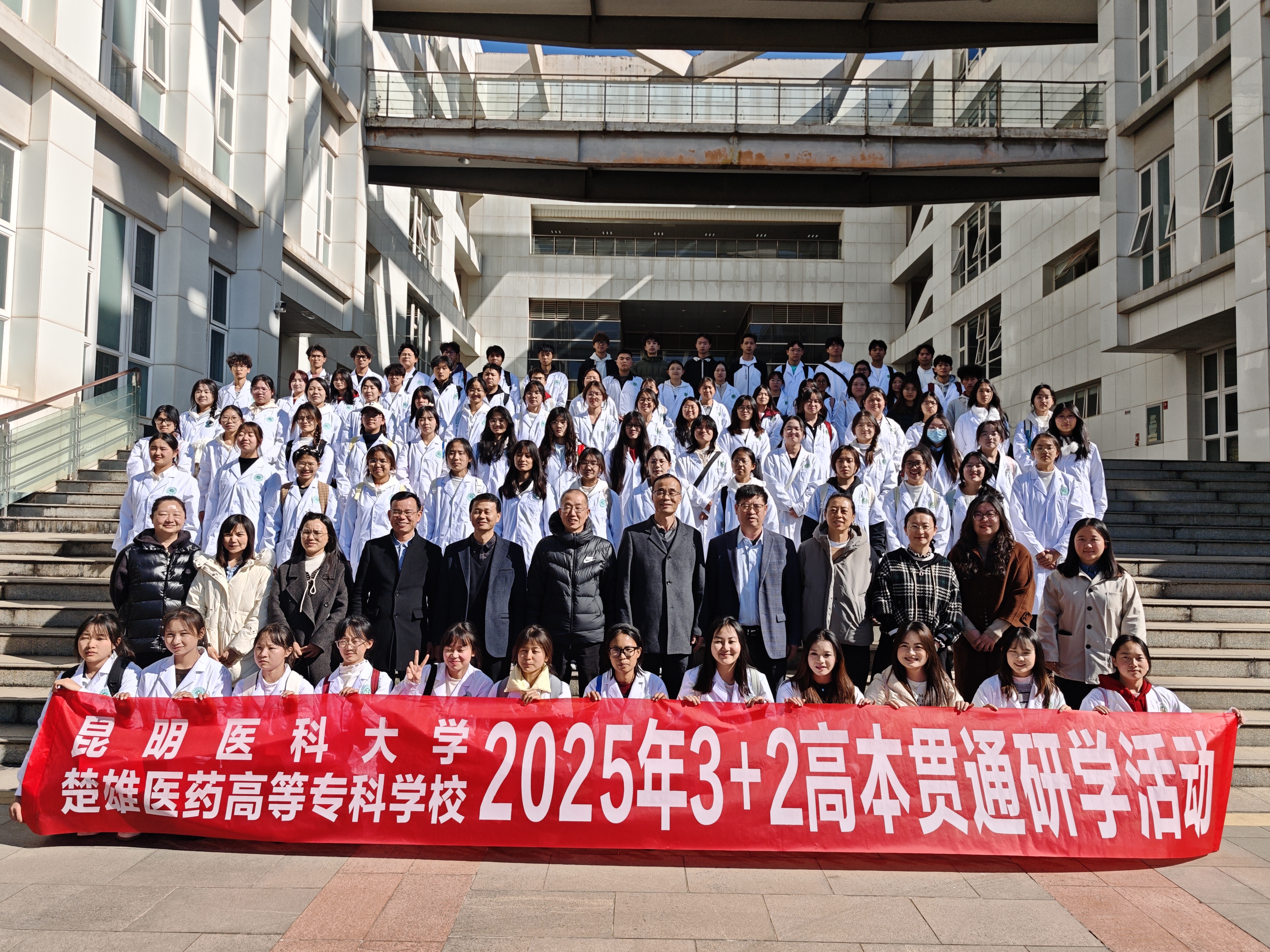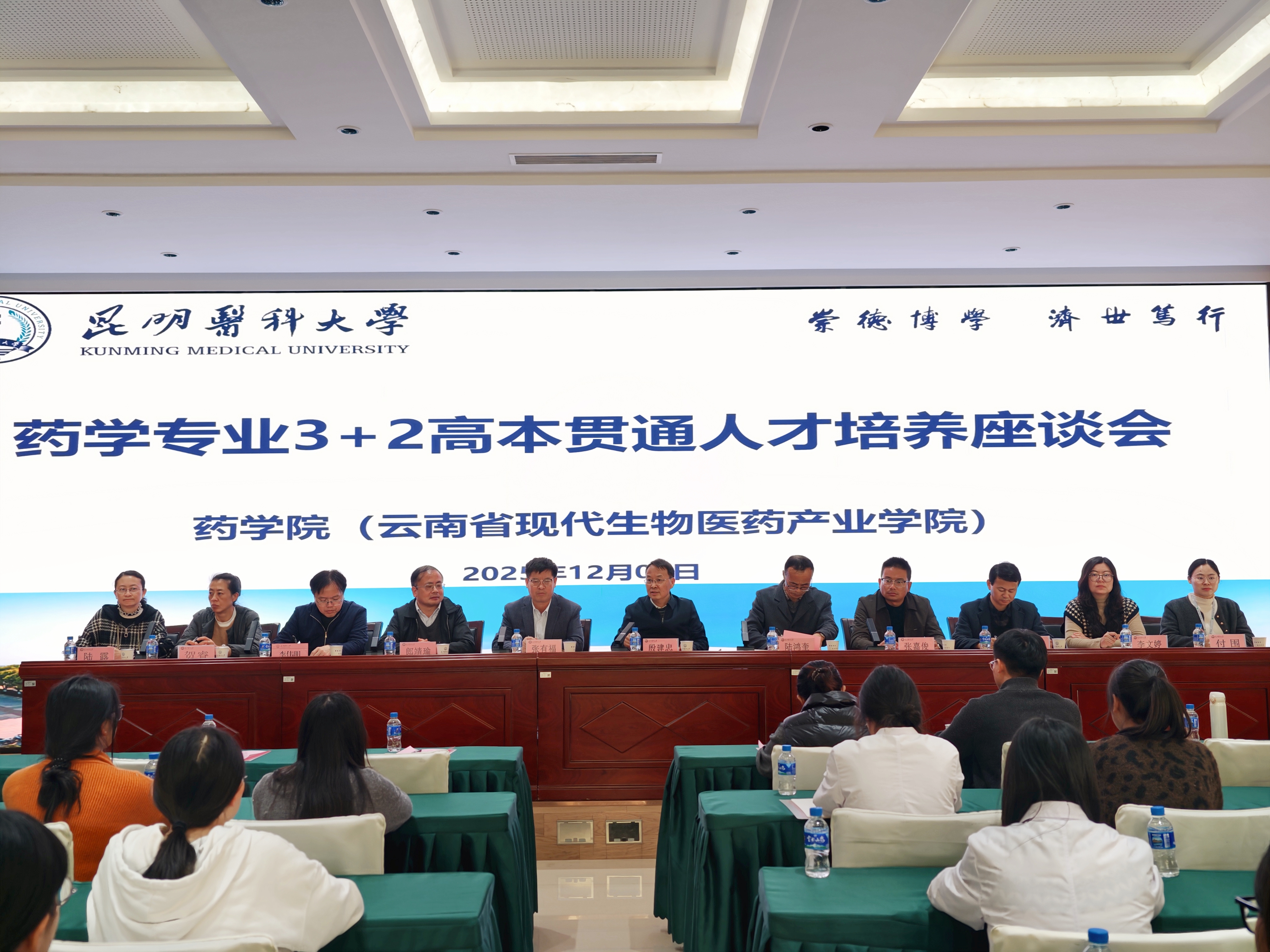 12月9日下午,昆明医科大学药学院与楚雄医药高等专科学校在学术交流中心第二报告厅召开药学专业3+2高本贯通人才培养座谈会。昆明医科大学党委常委、副校长殷建忠,教务处副处长李伟明,药学院党委书记张有福、副院长(主持工作)郎靖瑜、党委副书记贺睿、副院长陆露;楚雄医药高等专科学校副校长陆鸿奎、校办公室副主任张嘉俊、药学院院长赵有亮、副院长李文婷出席座谈会。双方相关办公室负责人、教师代表,以及药学专业3+2高本贯通培养2024级、2025级共92名学生参会。陆露副院长主持会议。