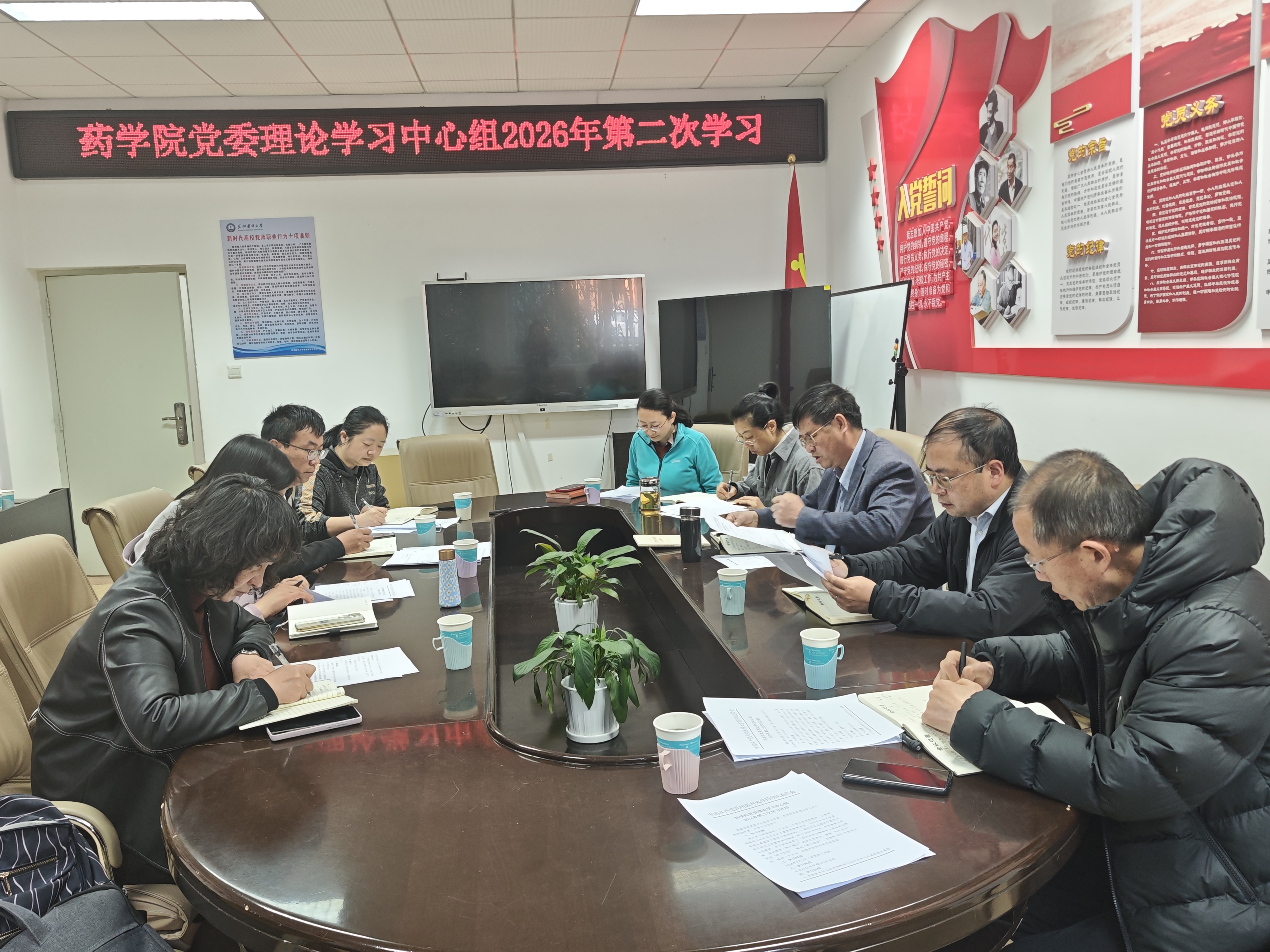 3月5日,药学院党委理论学习中心组2026年第二次学习在药学楼103会议室举行。学院党委委员、非党委委员的院领导、学院党政办公室负责人参加学习。会议由学院党委书记张有福主持。