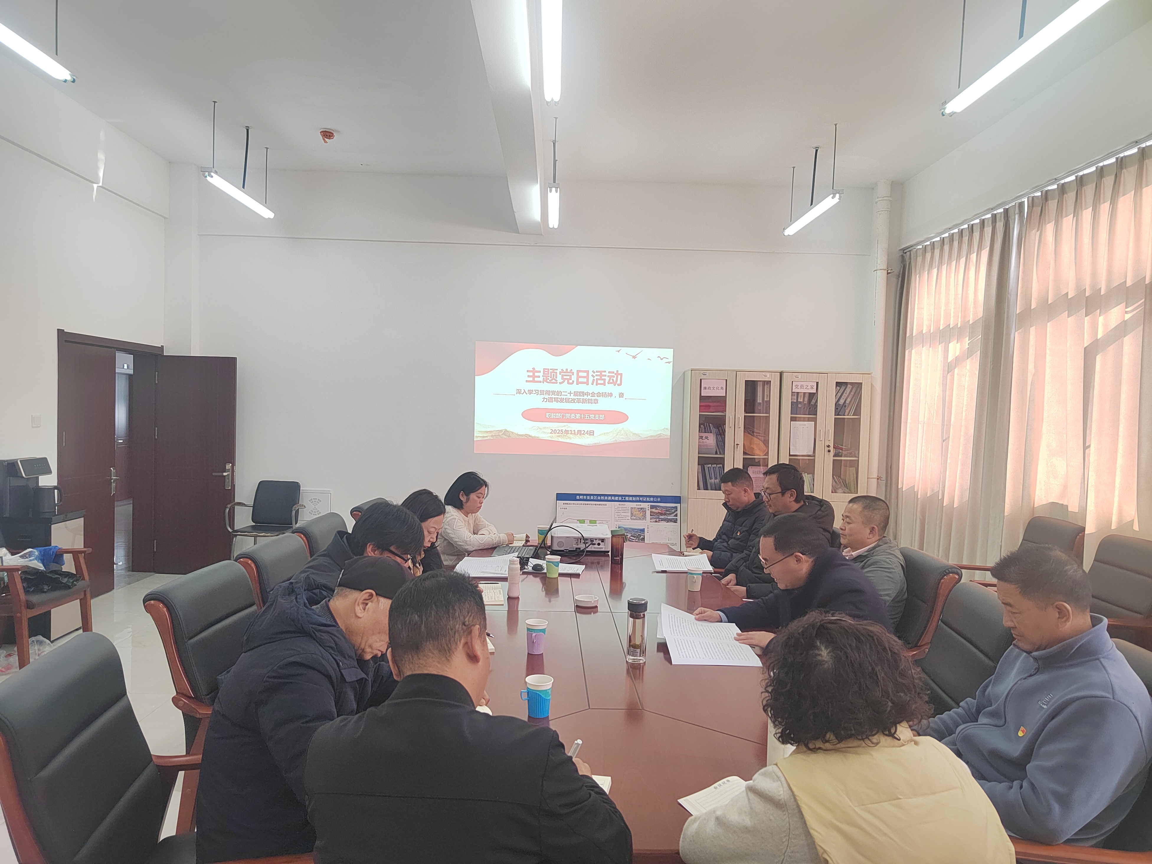 2025年11月24日,为深入学习贯彻党的二十大、党的二十届四中全会精神,引导广大党员干部不忘初心、牢记使命,全心全意为人民服务,进一步提高党员干部党性修养和干事创业热情,职能部门第十五支部开展专题党课学习教育活动。