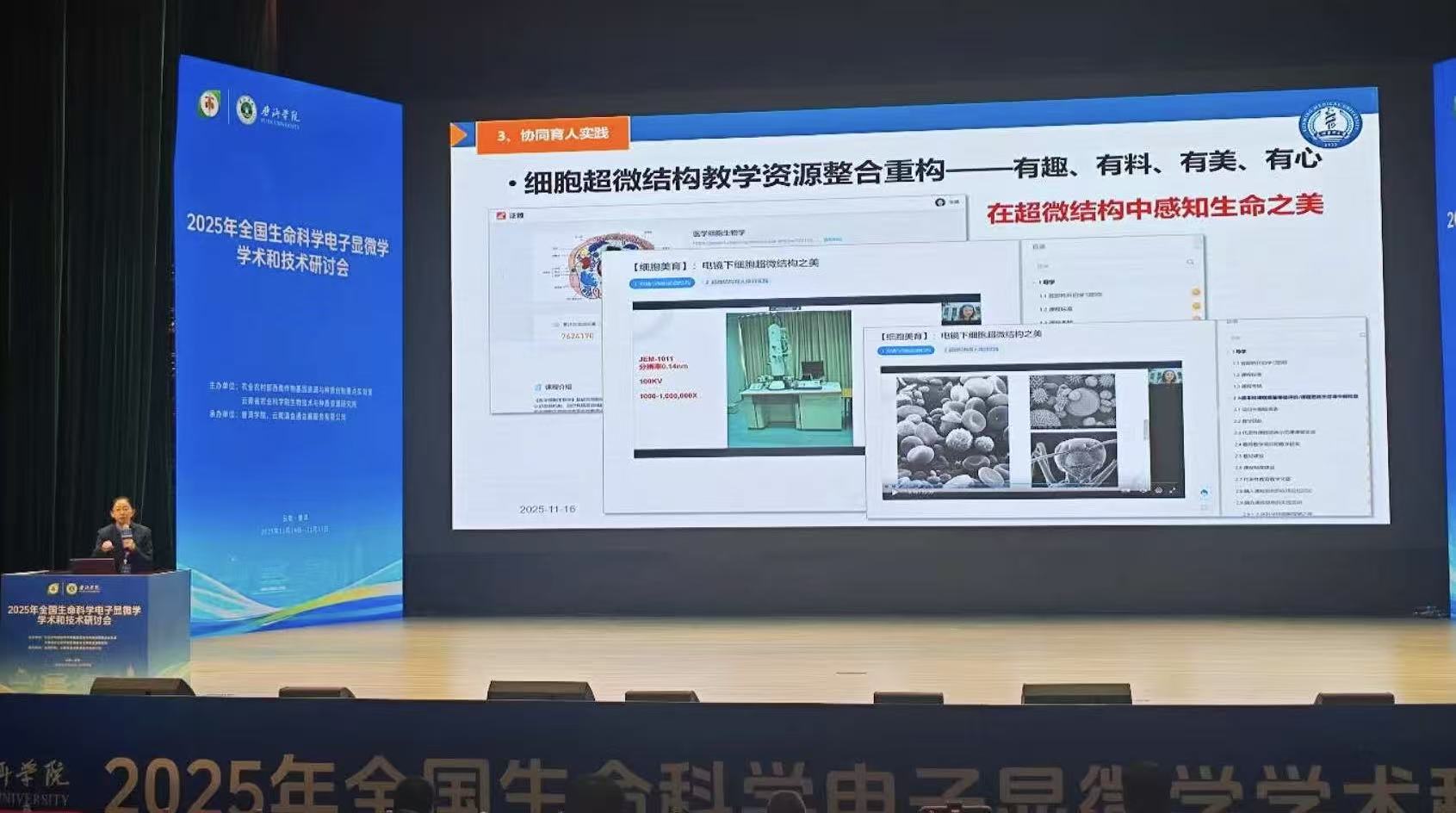 2025年11月15日上午,2025年全国生命科学电子显微学学术和技术研讨会于云南普洱学院召开。昆明医科大学基础医学院细胞生物学与医学遗传学系张璐老师,在此次会议的生物微结构分会场作了题为《一流课程建设背景下的医学细胞生物学与细胞超微结构协同育人体系构建》的报告,汇报了我院国家级一流课程医学细胞生物学与细胞超微电镜技术交叉融合的创新实践。