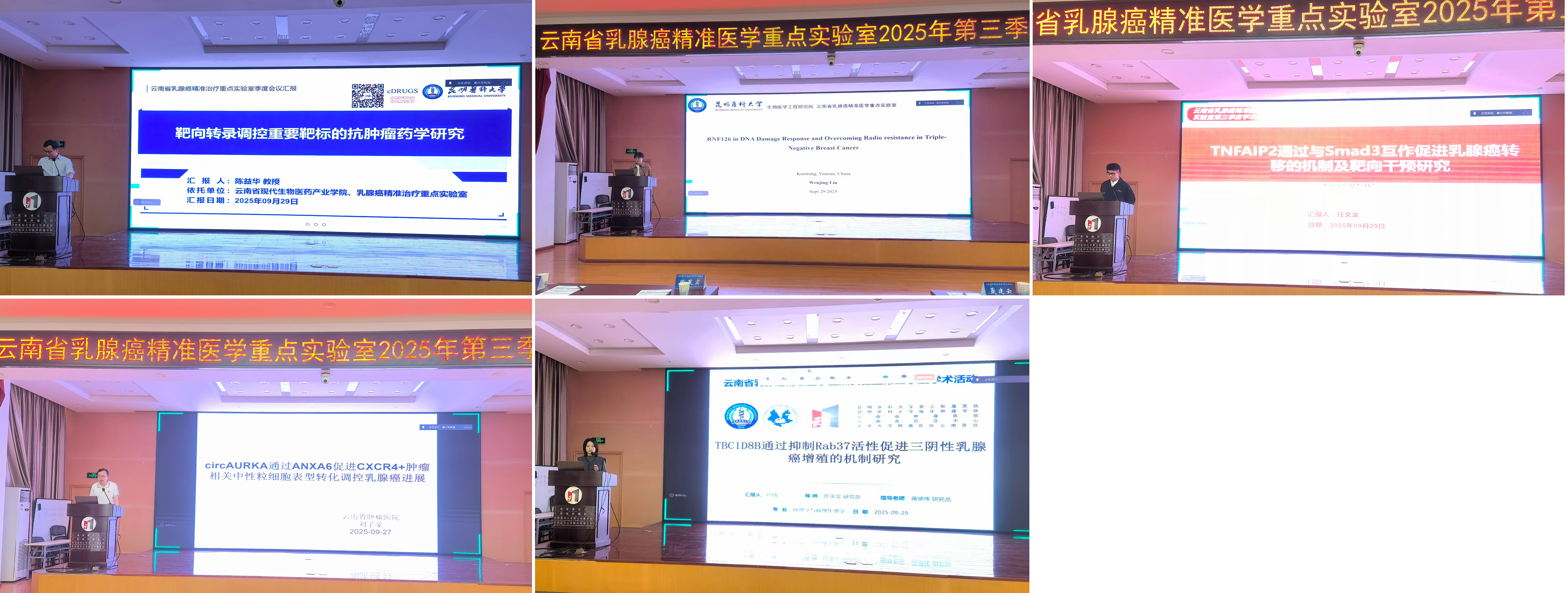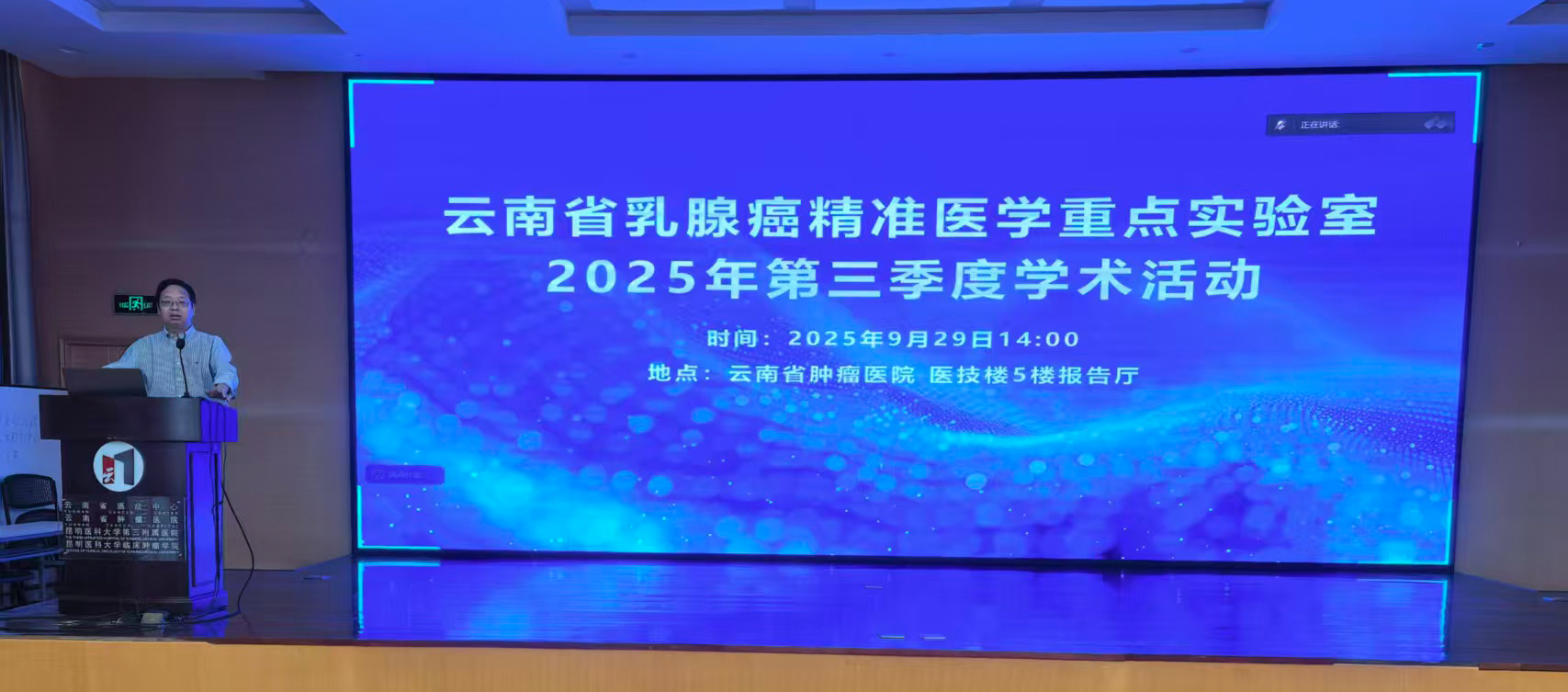 2025年9月29日,云南省乳腺癌精准医学重点实验室在云南省肿瘤医院医技楼5楼报告厅成功举办了2025年第三季度学术活动。重点实验室主任陈策实、副主任李富兵、黄胜,实验室各研究方向负责人,科研骨干以及昆明医科大学和云南省肿瘤医院在读硕博等80余人参与活动。会议开幕式由黄胜副主任主持,陈策实主任致辞,陈策实主任强调重点实验室在第三季度中在学术成果产出以及科研项目获得方面均取得了优异的成绩,鼓励大家再接再厉,弥补不足,持续为重点实验室的建设添砖加瓦。