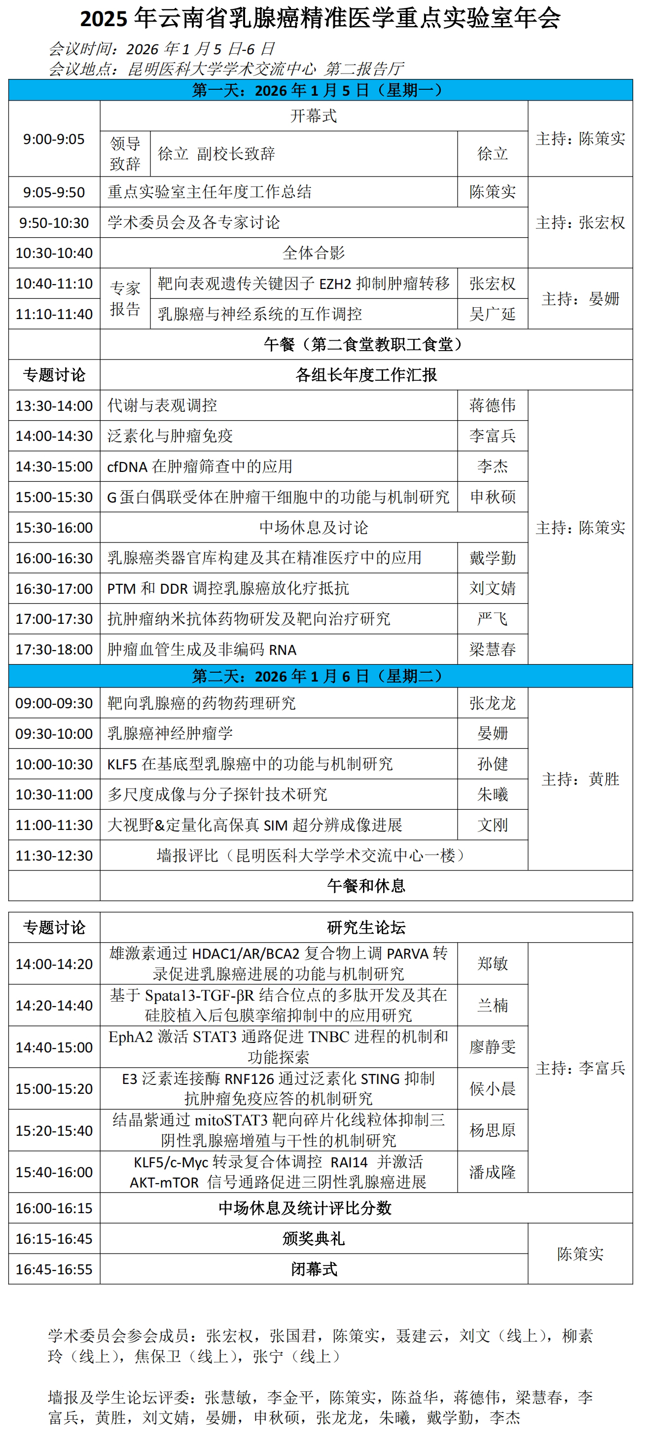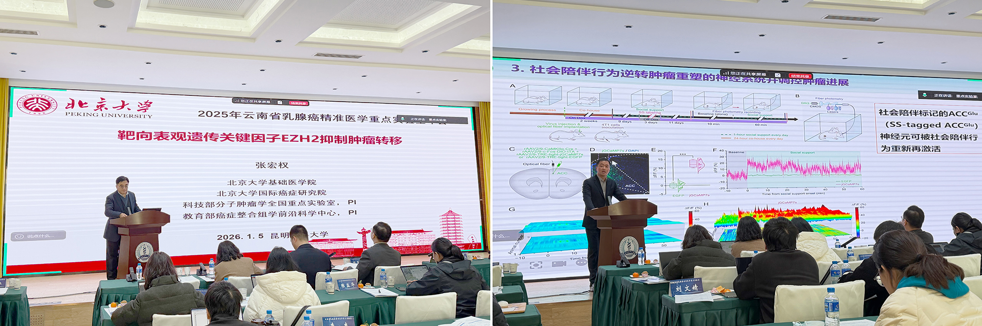 特别值得一提的是,重点实验室共建单位云南省肿瘤医院乳腺中心多位临床医生包括张国君院长、聂建云副院长、陈策实副院长、汤琦主任、易子寒、唐诗聪、郭蓉、李臻、段如菲、白静雯、孙健等多位博士参加本次年会交流。
