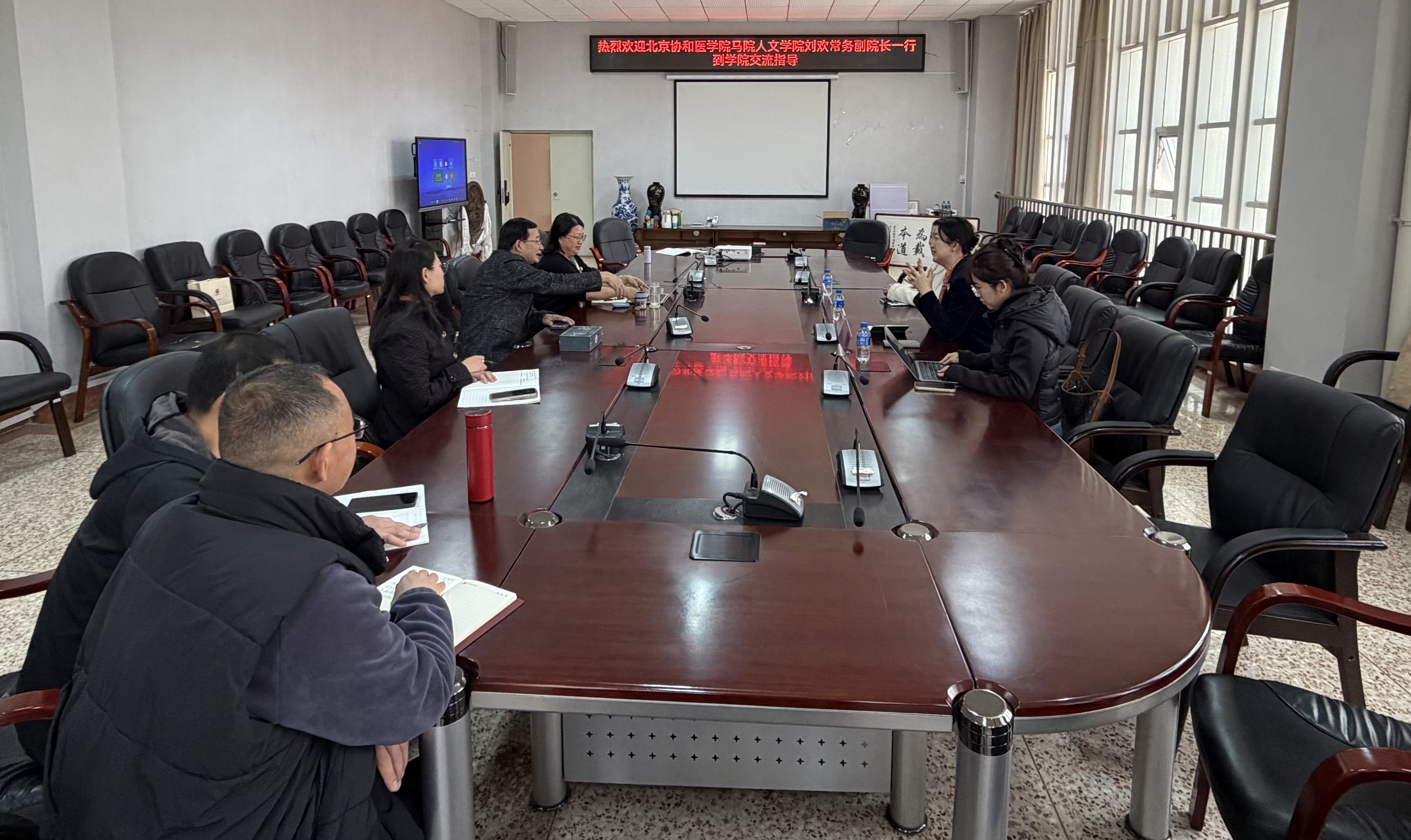 为深化医学人文教育领域合作,推动医学人文与科学精神深度融合,3月2日,北京协和医学院马克思主义学院人文与社会科学学院、医学人文发展研究院常务副院长刘欢一行,莅临学校医学人文教育与研究中心、公共艺术教学部开展交流座谈。学校图书馆馆长张瑞宏,人文与管理学院副院长胡艳丽及相关教师代表参加座谈。座谈会由医学人文教育与研究中心、公共艺术教学部主任罗萍主持。