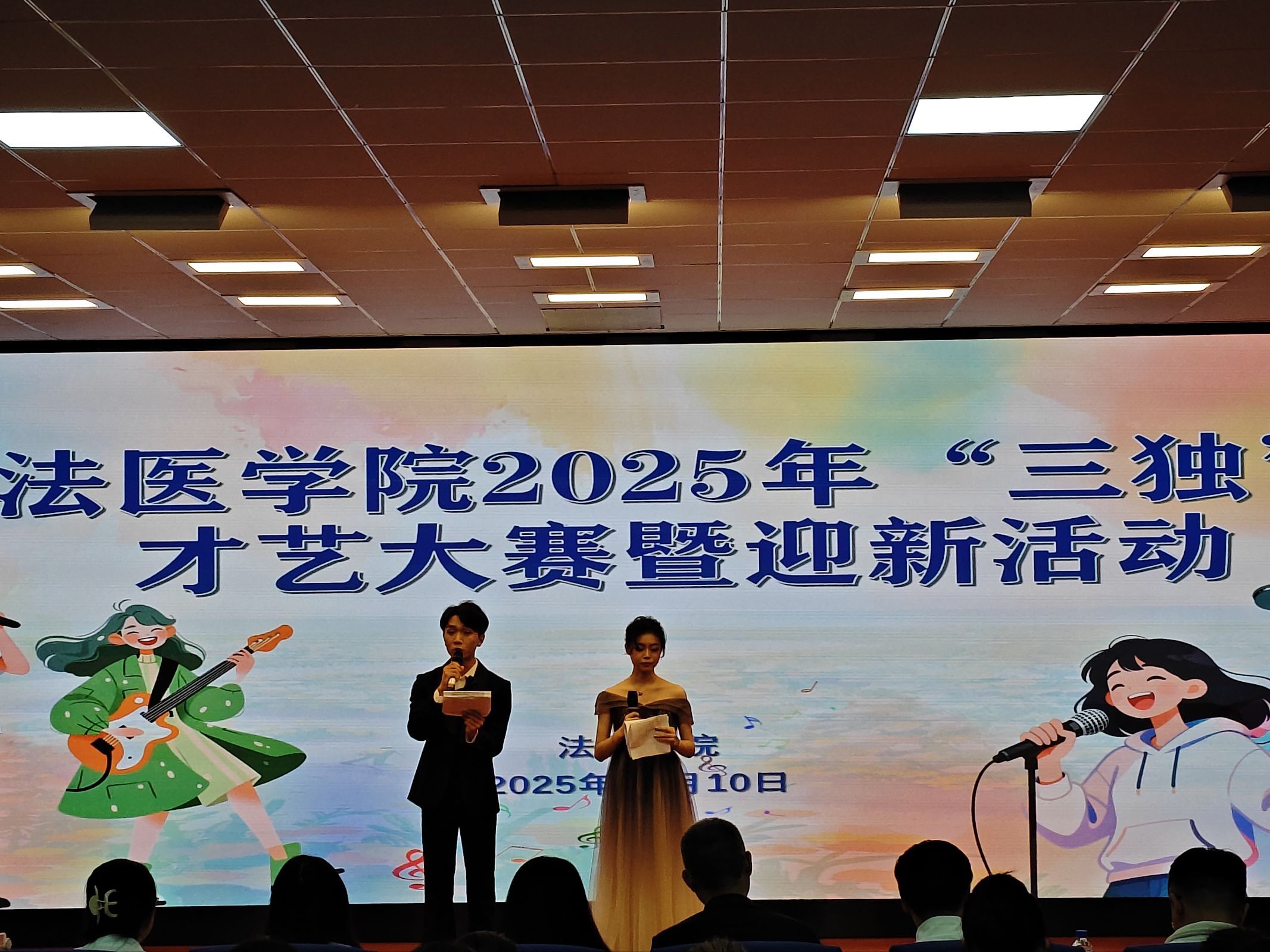 2025年10月10日晚,法医学院在六楼报告厅组织开展2025年“独唱、独舞、独奏”才艺大赛暨迎新活动。学院部分老师和2025级全体同学参加本次活动。