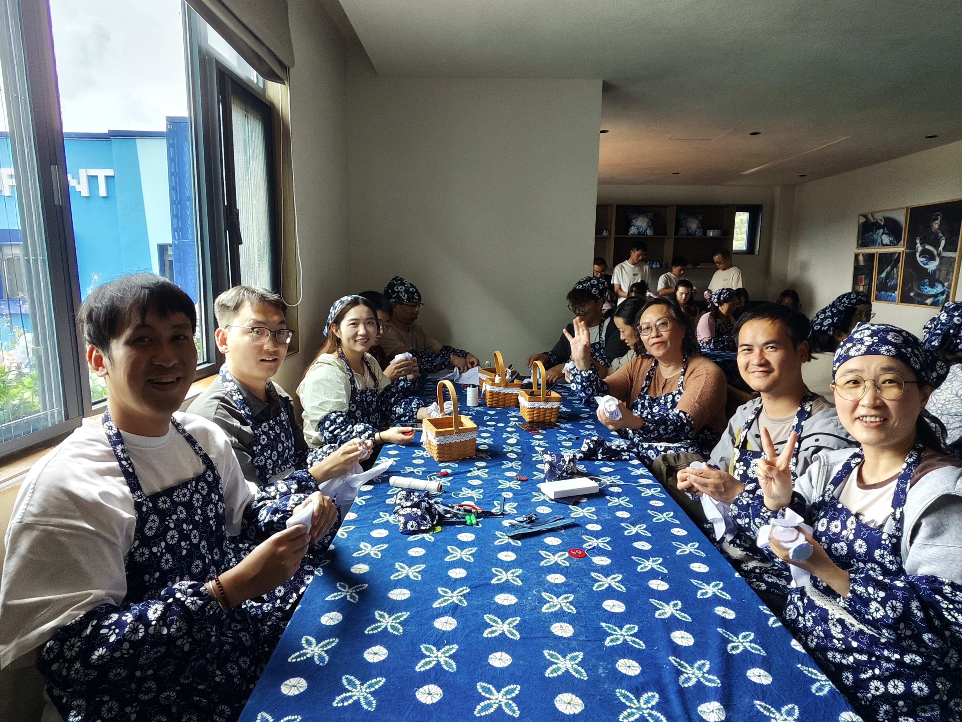 在风景优美的户外,教师们或于秋色中漫步畅叙情谊,或体验剪纸、扎染等传统工艺,在方寸之间寄托了对教育事业的挚爱与美好祝福,现场欢声笑语,其乐融融。