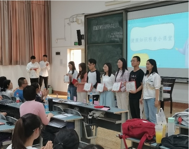 4月22日,健康节前期宣传活动——健康知识科普小课堂在教学楼开展。活动前期,广泛征集作品,并筛选出最优秀的十份作品进入现场比赛。在现场活动中,参赛选手依次上台讲解,为同学们科普了心血管疾病、手足口病和幽门螺杆菌感染以及正确选用、清洗内裤等健康知识。最后,沈凌老师对本次活动做了总结。本次健康知识科普小课堂的成功举办让更多的同学参与到健康教育宣传中来,为后续健康教育活动的开展起到了很好的开头作用。