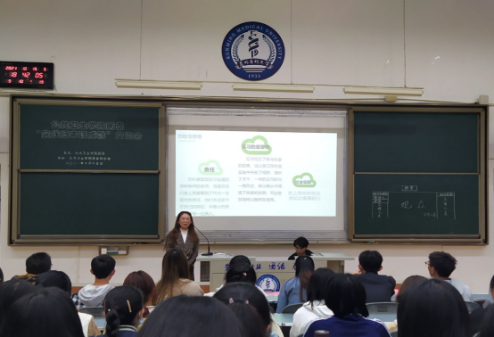 2020级预防医学一大班靳国琴同学向同学们分享了自己在大理州祥云县沙龙镇白岩村卫生室参与血吸虫病采样,高血糖筛查、预检分诊的工作,同时也呼吁同学们要知道基层医疗的重要性,学会在实践的过程中培养操作技能,不断完善自己,成为一名优秀的健康守护者。