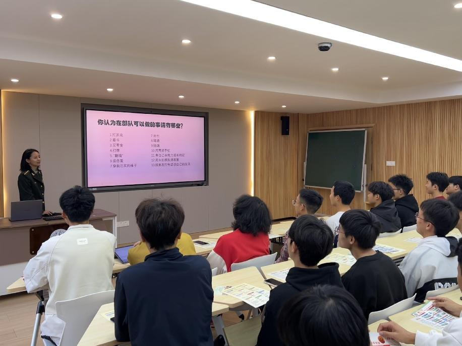 最后,公共卫生学院辅导员罗伟铭老师围绕同学们关心的参军入伍条件、流程及待遇等做了进一步详细说明。同时,鼓励有志向的同学尽早做好规划,提前做好思想及身体准备。