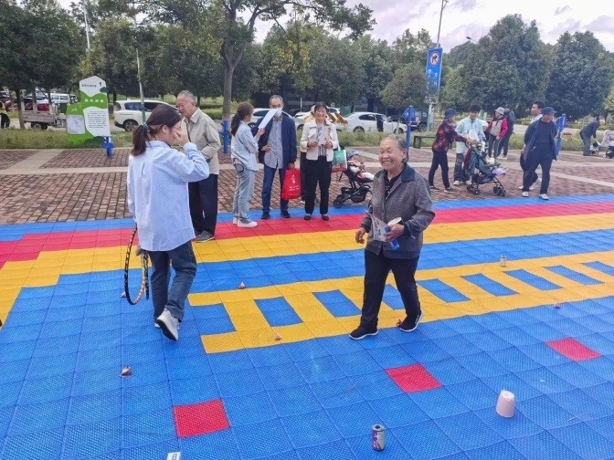 活动现场,通过设置重阳节宣传展板,给社区居民们发放重阳节宣传册,开展“插茱萸”“祝福在我手”“重阳套圈”“消灭疾病”“重阳大转盘”等有趣小游戏,为社区居民送上了欢乐和真诚的祝福,更是让他们感受到了关爱和温暖。