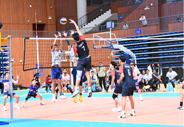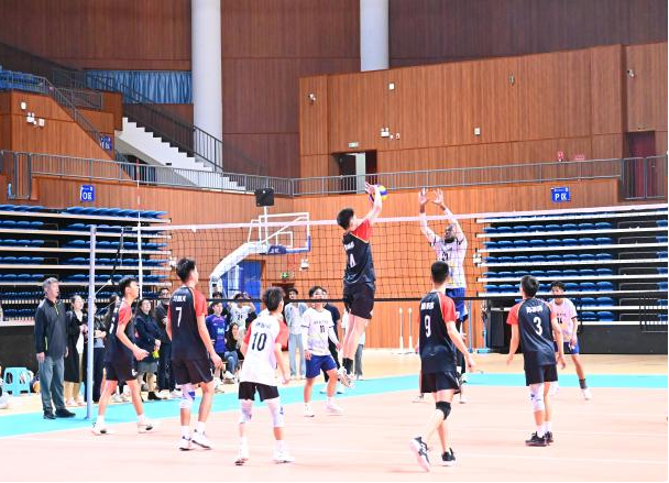 队员们腾空而起,发球,拦网,迅速调整站位配合接球,寻求击球机会。