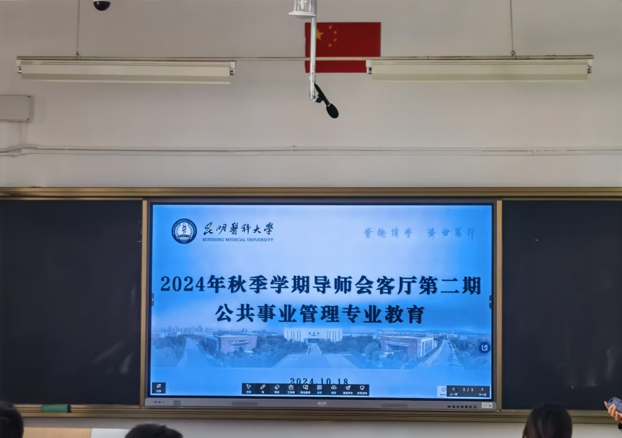 2024年10月18日,昆明医科大学“一站式”学生社区协同育人中心2024年秋季学期“导师会客厅“第二期在教学楼6206顺利举办,此次导师会客厅由公共事业管理专业主任张晓磬老师主讲,以“公共事业管理专业教育”为题,公共事业管理专业导师代表以及2024级公共事业管理专业全体同学参加了讲座。