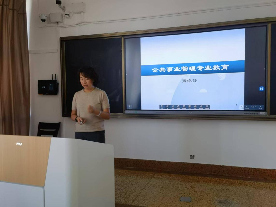 讲座开始,学业导师分别从个人研究方向、主讲课程等进行了自我介绍,拉近了与同学们的距离。张老师从公共事业管理专业的“培养目标、历史沿革、办学定位、就业方向以及就业前景”等方面进行了介绍和讲解,并且重点从学习态度、从学习方法、学习技巧、考研推免等方面强调了公管专业的同学应该如何学有所获,学有所成,同时鼓励同学积极努力备考英语四六级,提升自己的综合素养和身体素质。