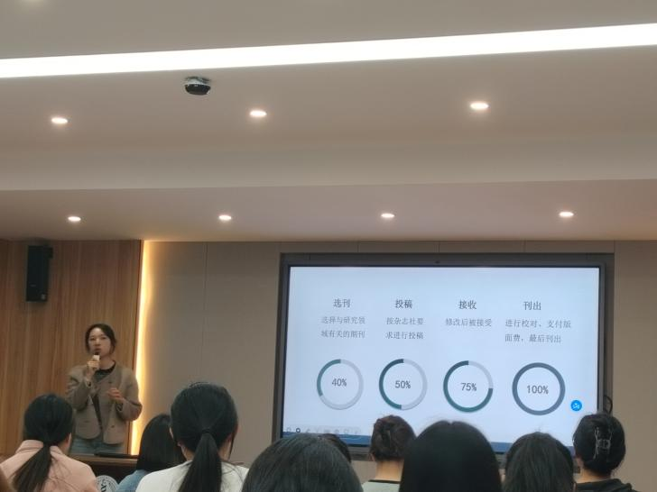 张明妹同学首先作文献阅读与管理方面的经验分享,她阐述了文献阅读的重要性、怎样精准高效的去检索、阅读文献的方法与技巧,还贴心的罗列绿鲸、有道翻译等工具来梳理笔记条例和提高阅读质量。随后,李鑫玉同学从怎样给学术期刊分类与投稿的角度出发,就如何查找期刊、期刊分类再到期刊投稿向新生进行详细的解说,最后还给予了新生们“科研顺利 多发文章”的美好祝愿。赵红瑞同学围绕开题报告撰写,从选题、报告撰写和答辩注意事项三方面进行了讲解,主要内容包含:一是如何选题,二是简洁明了的开题报告撰写流程,三是全视角、全方位的答辩注意事项。