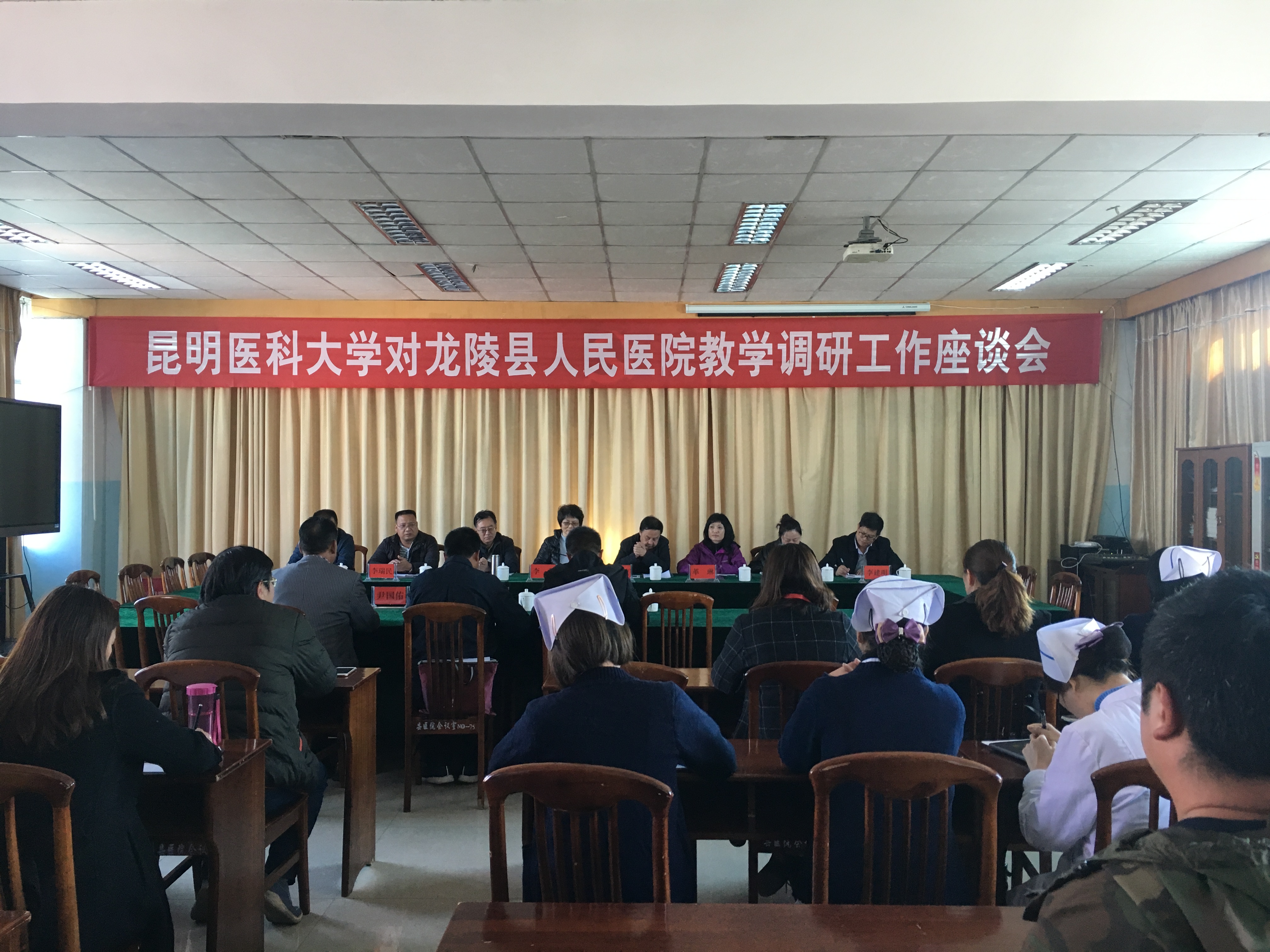 12月12日,工作组一行在龙陵县县医院召开了教学调研座谈会。会上,对龙陵县医疗卫生事业及医院教学工作情况进行了了解,与县医院各科室负责人就教学工作中遇到的困难和问题进行了交流。李燕对我校教学实习情况作了介绍,对会上提出的师资培训、专科建设、科研平台、学生实习等需求作了回应。