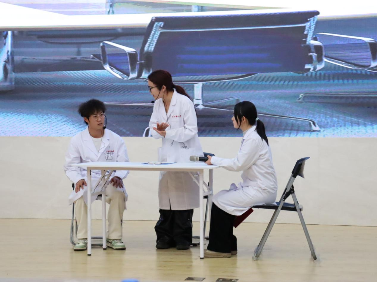 比赛现场,学生们沉浸式投入到“真实”的医疗场景中,通过接诊问诊、病情告知、治疗方案沟通、突发医疗纠纷处置等比赛环节,系统理解了医患沟通的技巧与艺术、医疗伦理的核心准则及临床相关法律法规的边界要求,在模拟场景的换位思考中,进一步强化了“以患者为中心”的服务意识和人文关怀素养。