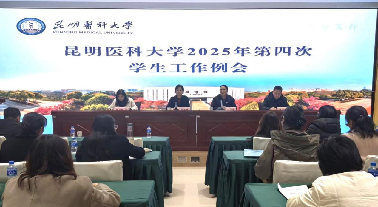12月24日,昆明医科大学2025年第四次学生工作例会在呈贡校区召开。校党委常委、副校长奚春睿,党委学生工作部部长杨国华,各学院分管学生工作副书记、学生党总支书记、学办主任参加会议。