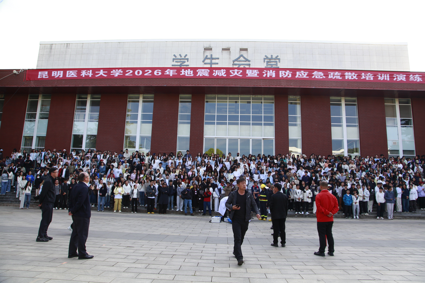 为深入贯彻落实2026年全省春季开学暨学校安全工作会议精神,切实提升全校师生的安全防范意识与应急处置能力,3月20日,昆明医科大学组织开展2026年防震减灾暨消防应急疏散培训演练。学校党委常委、副校长吴红明担任总指挥长,保卫处、后勤保障中心、资产经营有限责任公司、校医院、校应急处突队等重点岗位工作人员及各学院师生代表共1000余人参与本次活动。