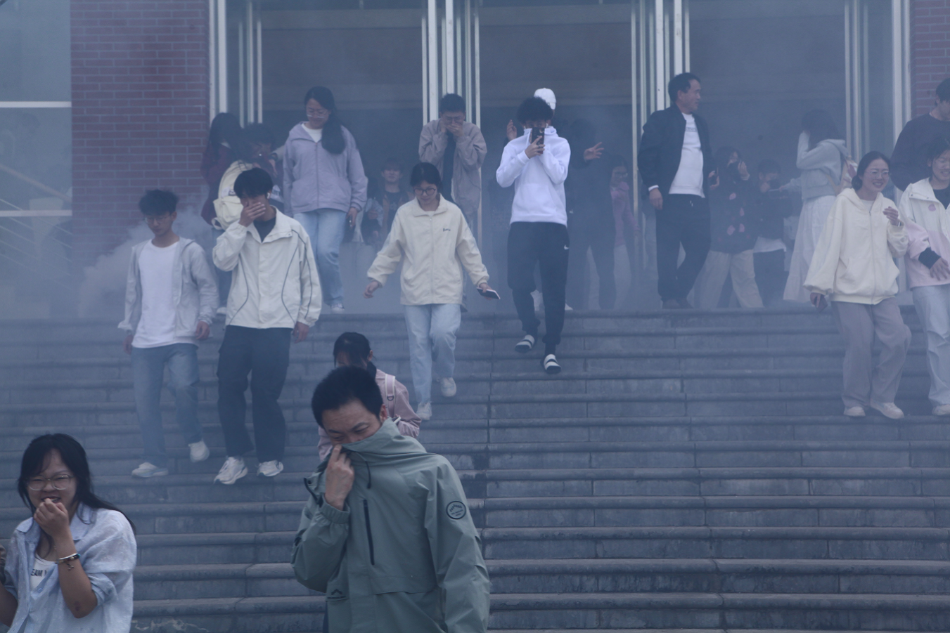 实操演练阶段,在工作人员的统一指挥下,全体人员有序开展地震紧急避险、火灾疏散逃生、现场抢险搜救等科目演练,全程规范有序,达到了预期演练效果。