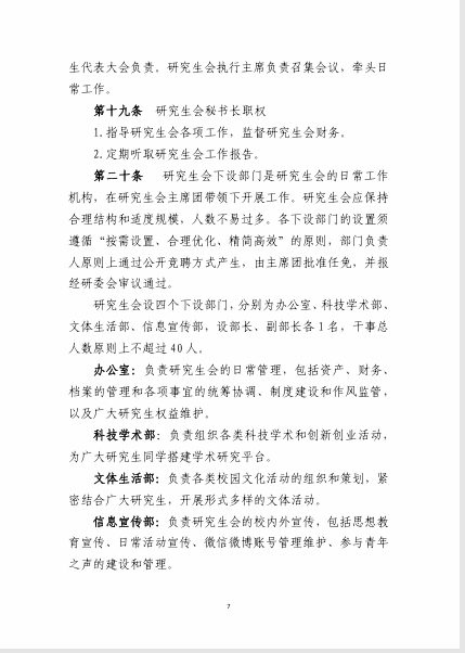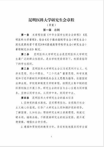 为落实共青团中央、教育部、全国学联联合下发的《中华全国学生联合会章程》以及《昆明医科大学章程》,并结合《关于推动高校学生会(研究生会)深化改革的若干意见》和《普通高等学校学生会(研究生会)章程制定办法》等文件要求,接受广大师生监督,现将我校2024-2025学年研究生会改革情况公开如下: