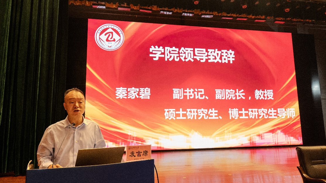 学院党委副书记、副院长秦家碧教授代表学院致辞,向全体新生表示热烈祝贺与诚挚欢迎。他回顾了公共卫生学院的发展历程,介绍了学院雄厚的师资力量与丰硕的育人成果,并对同学们提出三点期望:一是以信念铸魂,锚定青春报国的人生坐标;二是以笃学立身,筑牢专业为本的硬核根基;三是以立德塑行,把稳“公行天下、卫戍健康”的人生航向。