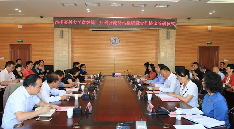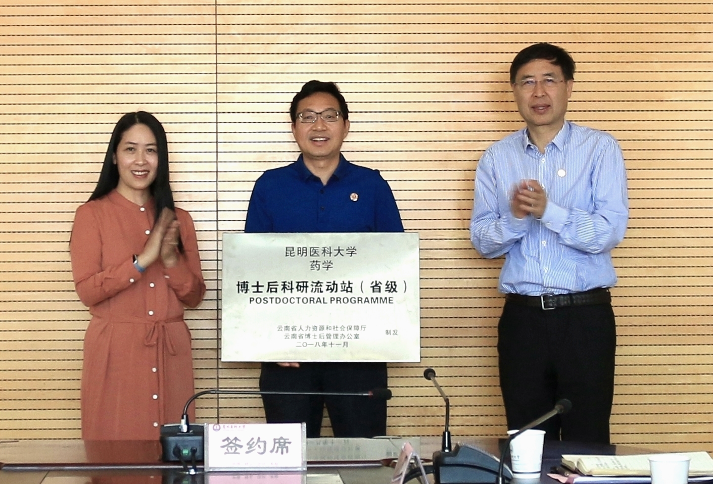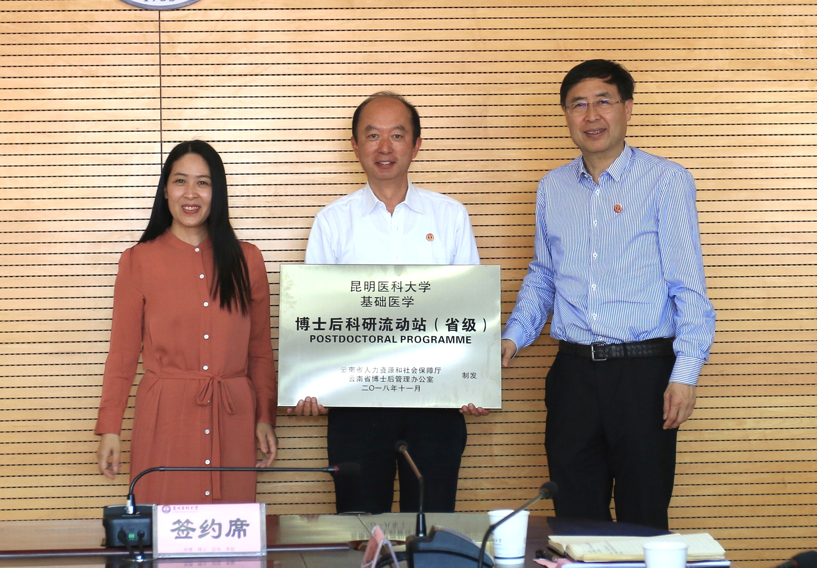 5月8日上午,学校在学术交流中心302会议室举行省级博士后科研流动站授牌暨博士后人员联合培养签约仪式。校长李松,副校长李利华,云南省人社厅专技处处长、省博士后管理办公室主任李玉红,云南省阜外心血管病医院党委书记周洪梅出席仪式。学校相关职能部门负责人,基础医学院、药学院党政班子成员及教师代表,云南省阜外心血管病医院相关负责人参加仪式。
