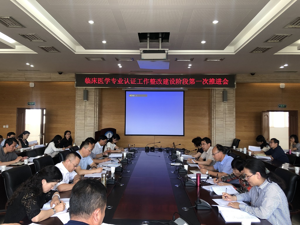 各临床医学专业主要教学单位汇报了本单位对照认证标准的自评自查情况、存在的问题,已整改工作推进情况,下一步整改工作计划。