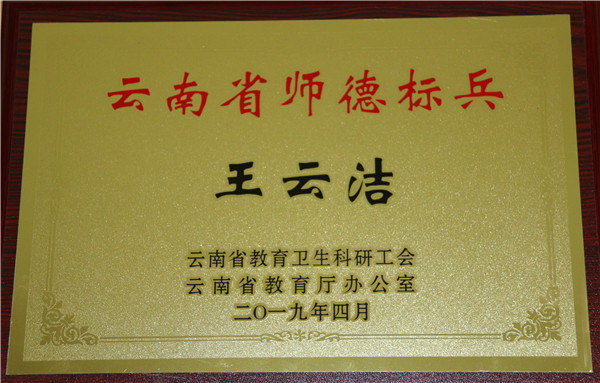 为促进云南省教育事业的全面发展,激励我省广大教育工作者积极践行职业道德规范,不断提高教师队伍的职业道德素质,进一步推动全省师德师风建设,近日,云南省教育卫生科研工会、云南省教育厅办公室联合开展了云南省师德标兵评选活动。经学校推选,省教育卫生科研工会和省教育厅相关处室认真评审,学校马克思主义学院王云洁老师荣获“云南省师德标兵”称号。
