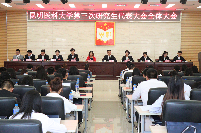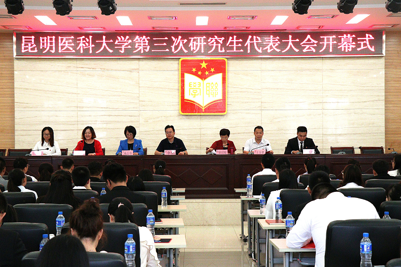 6月26日,昆明医科大学第三次研究生代表大会在学术交流中心第二报告厅召开。校党委副书记李铭、党委委员、副校长徐绍琼,学校相关部门、单位负责人出席大会开幕式,各学院、单位团委书记列席会议。第三次研究生代表大会共有代表81名。