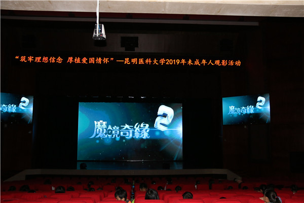 为了丰富教职工子女的暑期生活,培养孩子们爱祖国、爱和平的责任感、使命感和感恩奉献精神,7月16日,校工会、关工委联合组织了120余名小学—高中学习阶段的教职工子女和部分在校学生在呈贡校区学生会堂观看具有教育意义的电影。观影活动考虑到不同年龄段孩子的需求,安排了《中国蓝盔》和《魔镜奇缘2》两部影片。