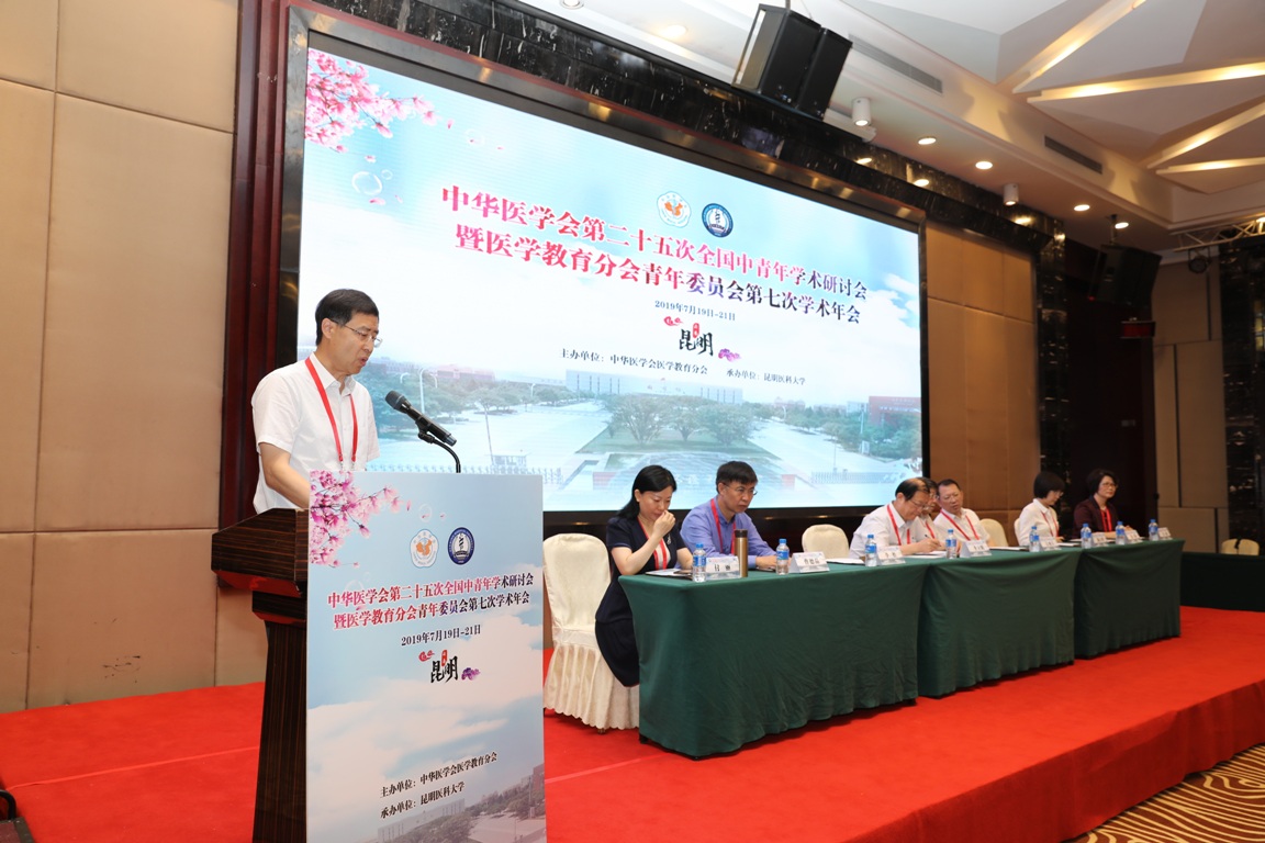 7月19日至21日,由中华医学会医学教育分会主办、我校承办的中华医学会第二十五次全国中青年学术研讨会暨医学教育分会青年委员会第七次学术年会在我校召开。中华医学会医学教育分会主任委员、北京协和医学院党委书记李立明,中华医学会医学教育分会前主任委员、原首都医科大学校长吕兆丰,北京大学医学部副主任王维民,北京协和医学院副校长张勤,首都医科大学教授付丽等来自全国86家单位的近200名专家、学者和教师代表参加了会议,昆明医科大学校长李松、副校长李燕出席了会议。