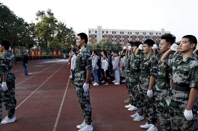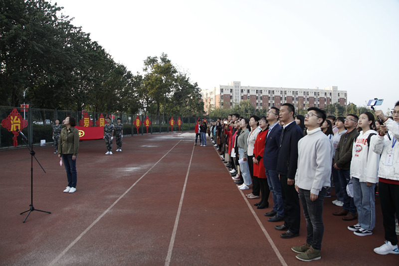 在雄壮的国歌声中,鲜艳的五星红旗冉冉升起,全体人员肃穆而立,满怀崇敬之情向国旗行注目礼,送上对祖国最美好的祝福。