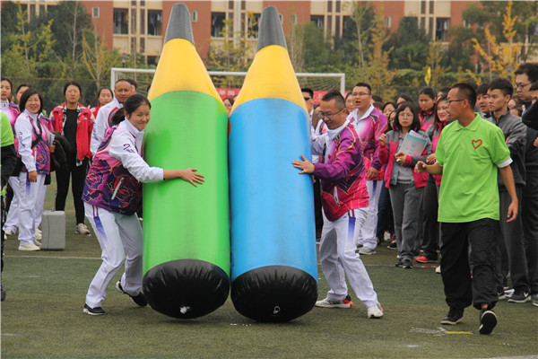 为丰富教职工的体育文化活动,培养团队协作精神,增强教师团队的凝聚力,增进各部门师生之间的沟通和了解,弘扬“崇德、精业、团结、奉献”的校训精神,在新中国建国七十周年之际,我校举行第四十一届田径运动会——教职工趣味运动赛。