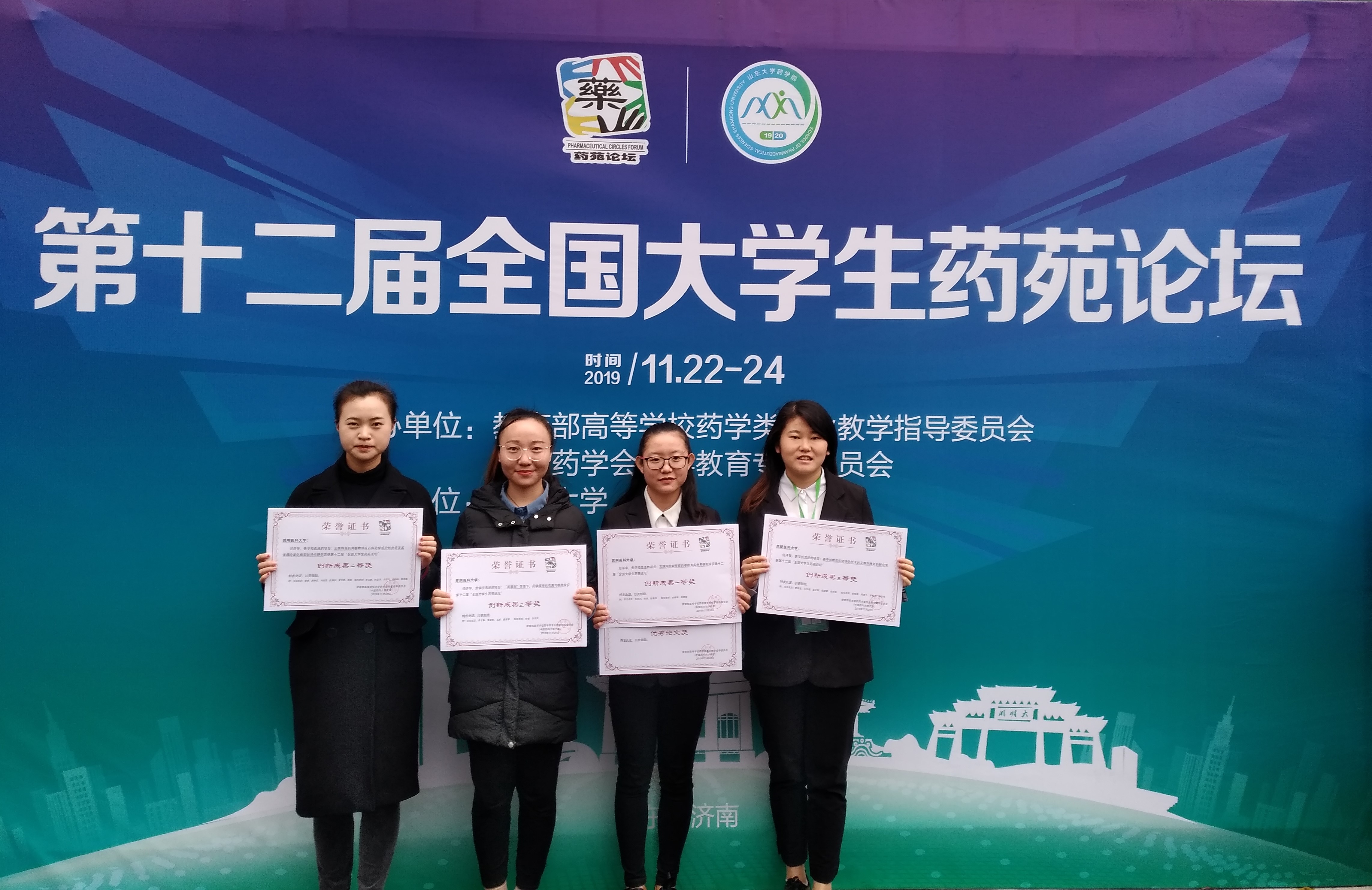 11月22至24日,由教育部高等学校药学类专业教学指导委员会和中国药学会药学教育专业委员会主办、山东大学承办的第十二届“全国大学生药苑论坛”在济南召开,来自全国110余所院校的近600名师生参加了论坛,其中195名学生提交了参赛作品。通过壁报交流、论文评选、学生答辩等环节,我校药学院选派的4名学生全部获奖。其中张欣月获创新成果一等奖、杨婧获创新成果二等奖、李才静和曹锦雪均获创新成果三等奖,张欣月还同时获优秀论文奖。