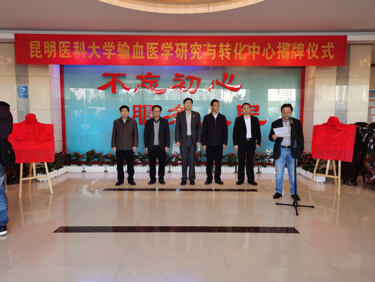 云南昆明血液中心主任冯凌在仪式上致辞。他表示,昆明医科大学与云南昆明血液中心正式“牵手”,“昆明医科大学输血医学研究与转化中心”挂牌成立,这是云南昆明血液中心发展史上的大事、喜事,是血液事业借力借智、跨越发展新的起点和里程碑。从这一刻起,双方在科研、教学、人才培养、科研成果转化应用等领域的合作将全面展开,这必将为全省输血医学的快速发展提供强大的科技支撑,对于保障全省各族人民群众的生命健康安全,助推昆明建设“中国健康之城”具有重要意义和深远影响。