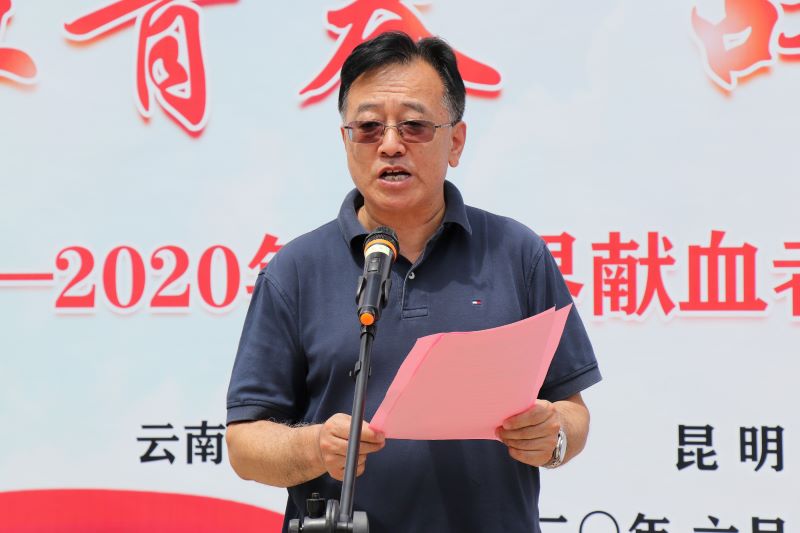 昆明医科大学党委副书记李铭在启动仪式上讲话。他指出昆明医科大学作为培养高级医疗卫生人才的省属重点大学,立足“立德树人”的根本任务,将志愿服务作为培育青年学生形成和践行社会主义核心价值观的重要载体,不断探索将实践育人实效与服务社会实效相结合的教育机制。学校党政历来重视无偿献血工作的宣传和教育,将无偿献血作为医学生职业素养培养的一项重要工作来抓,倡导学生践行“崇德 精业 团结 奉献 ”的校训,弘扬救死扶伤和人道主义精神。目前,在疫情防控特殊时期,医学生作为未来的健康卫士,虽然还不能投身到抗疫的前线,但仍然能够以无偿献血的实际行动加入疫情防控人民战、总体战、阻击战中。