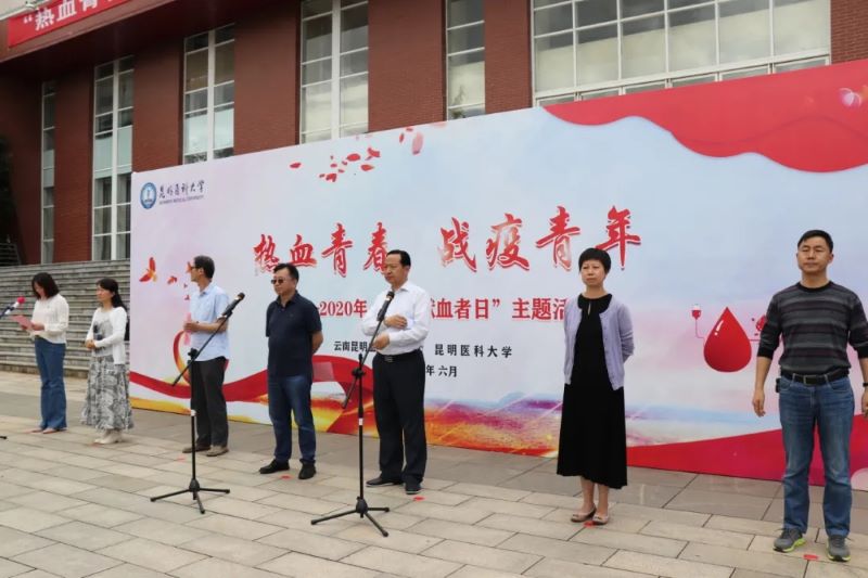 2020年6月15日, “热血青春,抗疫青年”——2020年“世界献血者日”主题活动在昆明医科大学呈贡校区举行,此次活动标志云南省高校无偿献血工作全面启动。昆明医科大学党委副书记李铭、云南昆明血液中心主任、党委书记冯凌、副主任徐彪出席启动仪式,党委宣传部、学生工作部、疫情防控办、校团委等部门以及300余名师生参加活动。校团委副书记杨国华主持启动仪式。