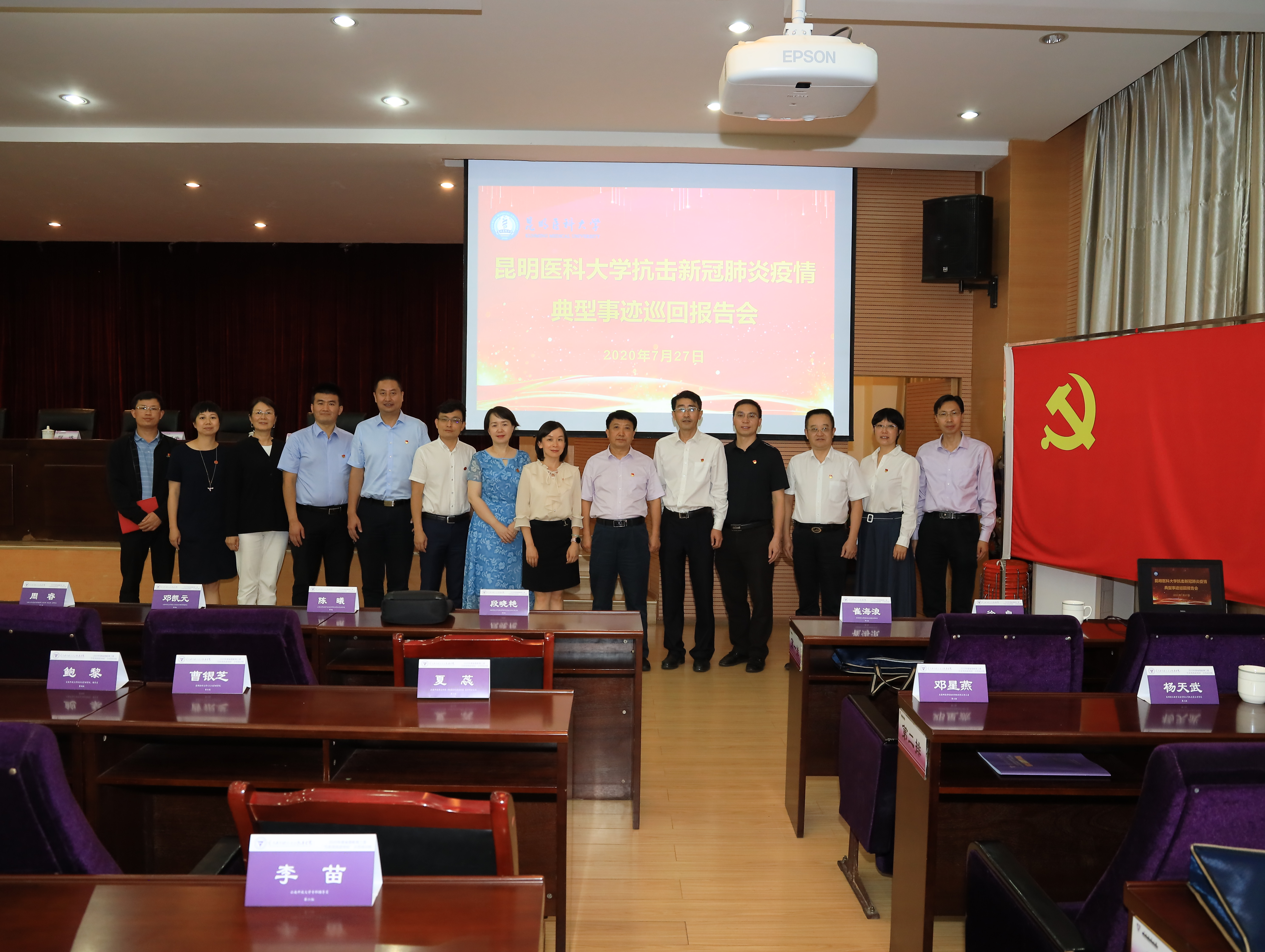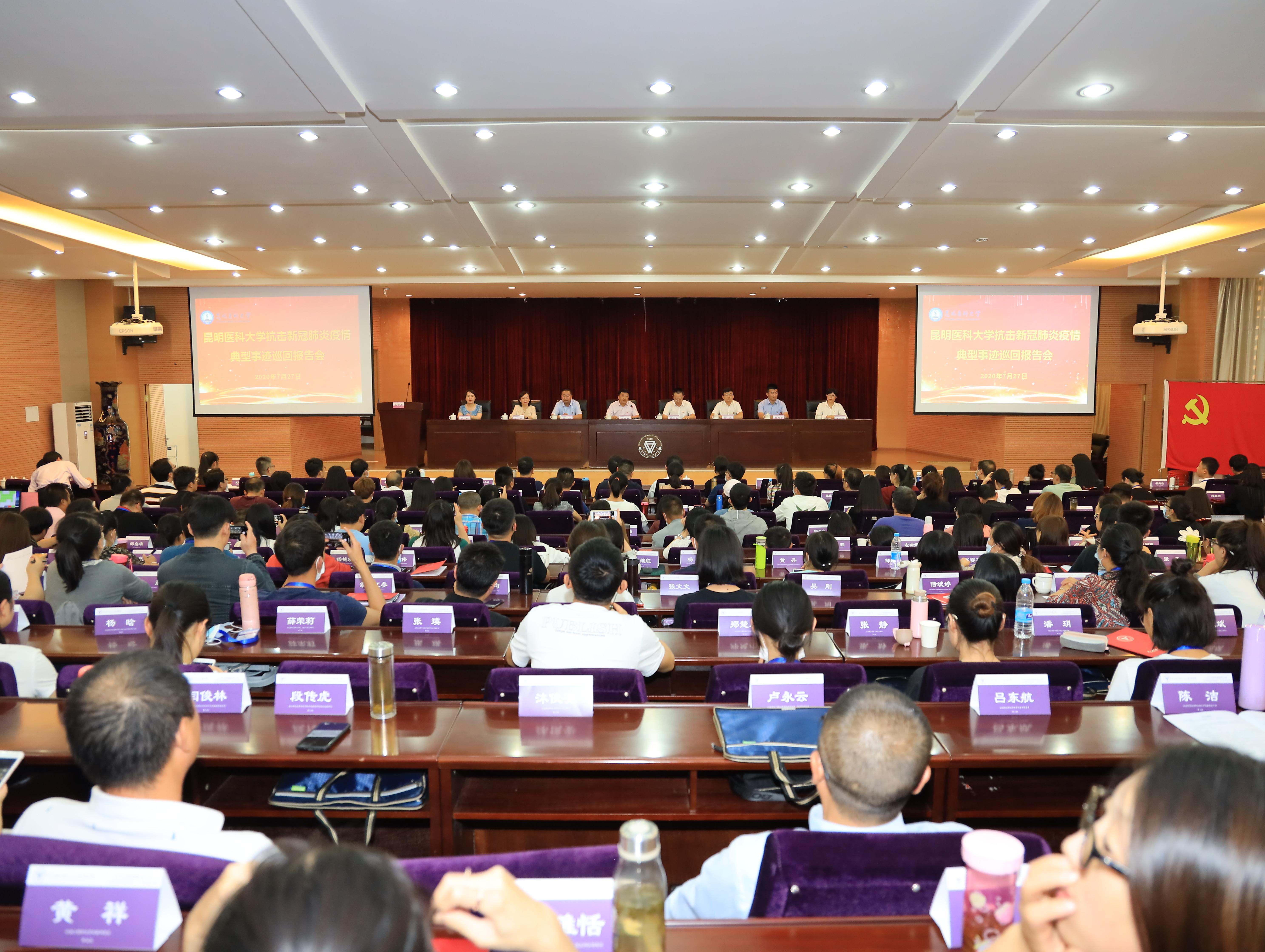 7月27日晚,由昆明医科大学党委副书记李世碧带队,昆明医科大学抗击新冠肺炎疫情典型事迹巡回报告团为省委教育工委2020年教育系统党员和干部教育培训班学员们作“抗击新冠肺炎疫情典型事迹宣讲”。报告会在云南师范大学-云南西南联大干部教育学院举行,省委教育工委组织部副部长彭义敏、云南师范大学党委副书记张玮、云南西南联大干部教育学院相关负责人以及2020年度省委教育工委“万名党员进党校”示范培训班、2020年度省委教育工委年轻干部培训班2个班共计240名学员参加报告会。李世碧主持报告会。