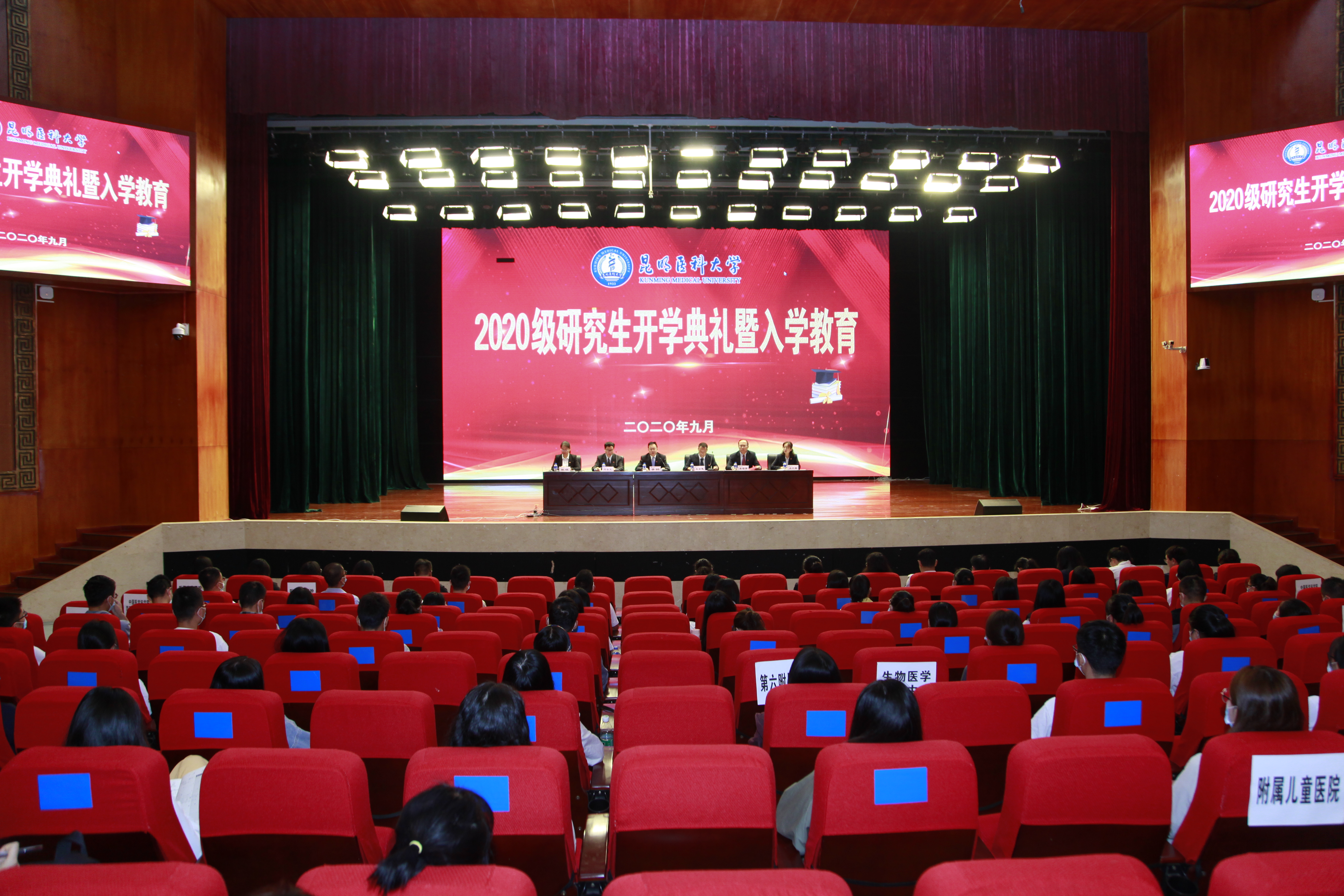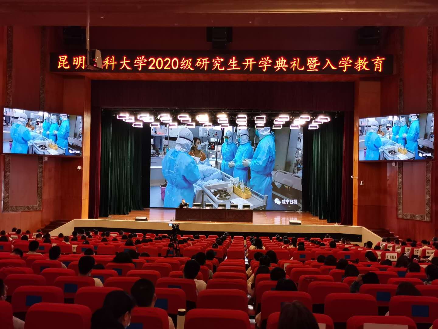 9月9日,昆明医科大学2020级研究生开学典礼暨入学教育在呈贡校区学生会堂举行。为落实疫情防控有关要求,此次开学典礼采用线上线下相结合的方式开展,除主会场外,学校在呈贡校区、经管办学点及相关培养单位共设立12个分会场,同步视频直播典礼和入学教育。学校党委副书记李铭出席开学典礼,研究生院党政负责人、全体教师,各研究生二级培养单位相关领导及教师,2020级博、硕士研究生、留学研究生共计1700余人参加了开学典礼和入学教育。研究生院党委书记王金德主持会议。