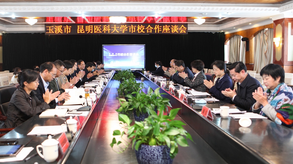 10月28日,昆明医科大学与玉溪市政府市校合作座谈会在玉溪举行。学校党委副书记、校长李松和党委委员、副校长李燕,玉溪市政府副市长曾敏、市政府秘书长李莉出席会议,学校校长办公室、教务处、研究生院、第一附属医院、第二附属医院和第三附属医院负责人,玉溪市市委编办、市人力资源和社会保障局、市教育体育局、市文化旅游局、高新区管委会、市卫生健康委、市人民医院、市中医医院、市妇幼保健院负责人参加会议。