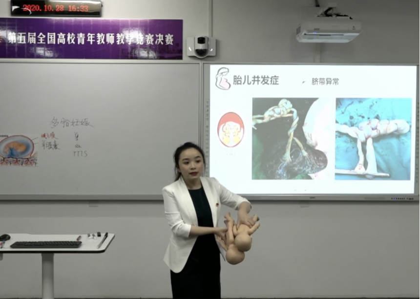 本次竞赛共有来自全国135所高校的162名选手参加决赛。决赛设立了文科、理科、工科、医科、思想政治课专项等5个组别,其中医科为本届新增组别,全国33所医科院校进入医科组决赛。决赛由教学设计、现场展示和教学反思三个环节组成,评委主要从教学内容、教学组织、教学语言与教态、教学特色等4个方面进行综合评审。侯友芳老师在决赛中讲解了《多胎妊娠的原理、并发症防治及健康教育》,获得评委的好评。